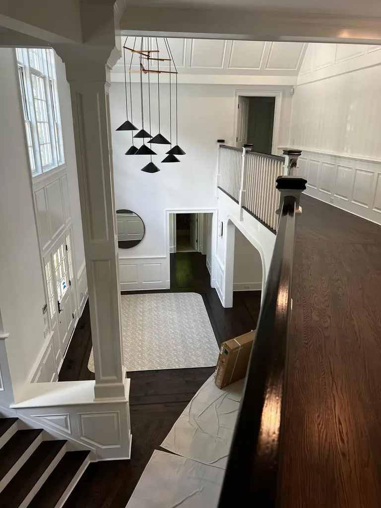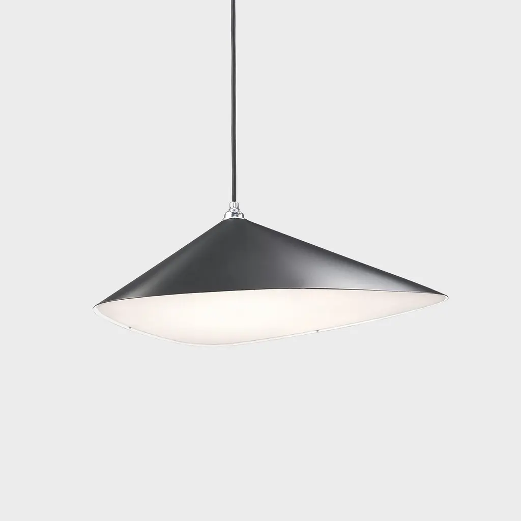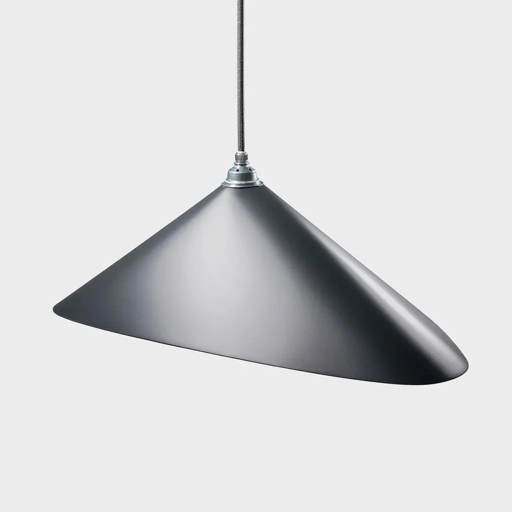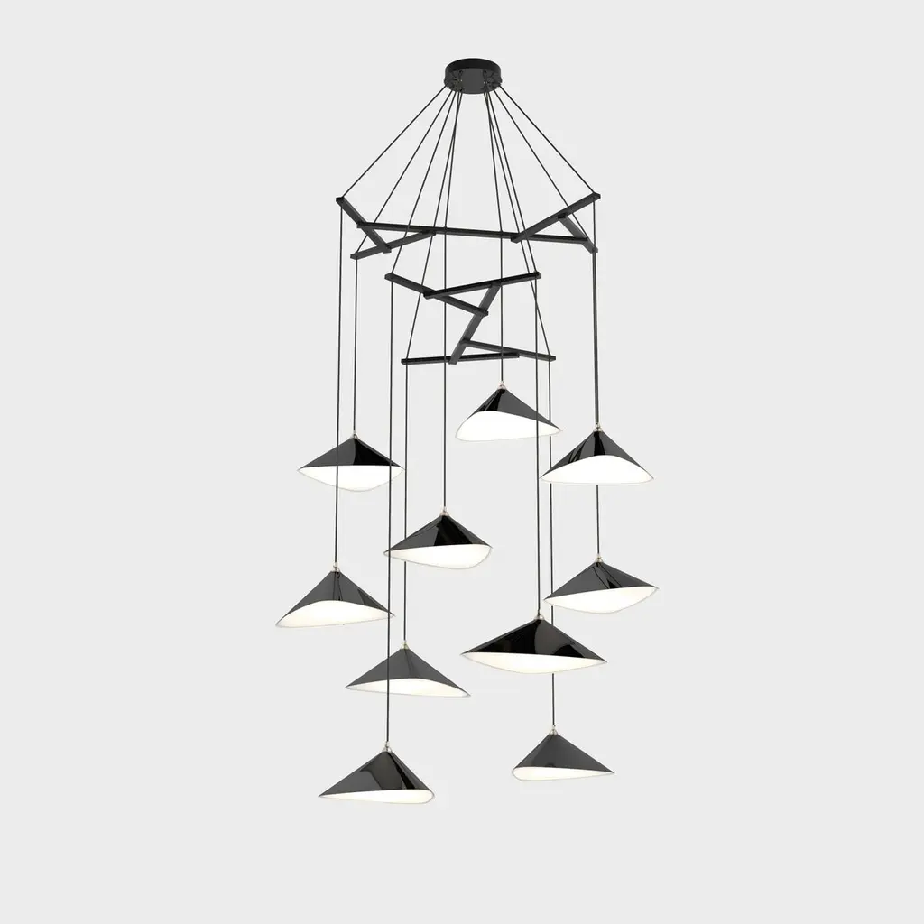 Daniel Becker 'Emily Vertikal 10' Chandelier in Anthracite/Oak for Moss Objects.Designed by Berlin luminary Daniel Becker and handmade to order using modern and mid-century manufacturing techniques, the Emily Series won the prestigious German Design Award 2019. The high quality sheet steel shades are cut, bent, formed, welded and sanded by hand in a complex process to build natural, organic shapes before they are painted semi-matte anthracite and fitted with opaline PMMA diffusers. Then they are arranged in a mobile like fashion around a sculptural frame of waxed oak timber. This new 'Vertikal' version of Becker's iconic design is better fitted for vertical spaces such as staircases, where a long and narrow installation is needed.Price per item. Shades available in glossy black (RAL 9005) as well as a semi-matte finish in anthracite (RAL 7021) or white (RAL 9003). Frame available in choice of natural or black oak. This listing is for the Emily Vertikal 10 chandelier in anthracite with oak frame. Please note that the photos in this listing also show other color and finish options. Prices vary.'Emily Vertikal 10' consists of:5 x 'Emily I' (13.6" W x 19.7" L)5 x 'Emily II' (14.6" W x 15.8" L)Standard in-stock lead time 5-6 weeks. Out of stock lead time up to 8 weeks or more. Lead time and availability are subject to change without notice. Please contact us for current lead time prior to placing time-sensitive orders.Wired for US electrical, each shade accommodates a single E26 medium base maximum 60W Equivalent LED bulb (bulb not included). Not UL listed, but recommended UL listing possible from an authorized 3rd party vendor upon request for an additional fee.Handmade to order. All sales are final.