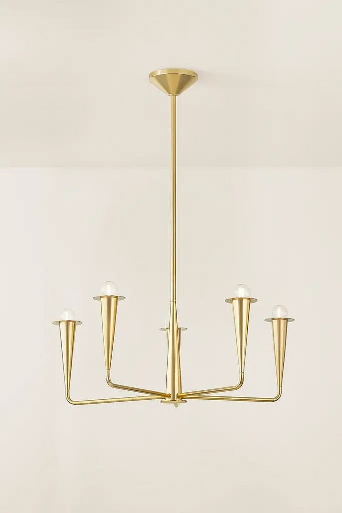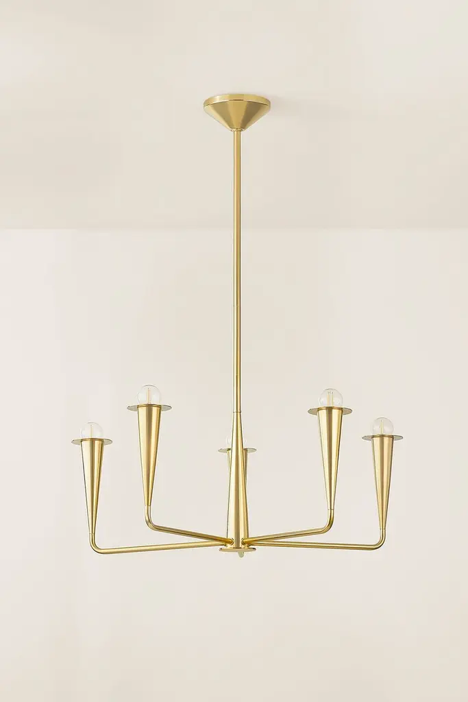 Bring the drama with this botanical-meets-industrial beauty. Slender candlesticks resembling torches support clear glass orbs as they illuminate modern interiors with a sense of retro flair. Available as a sconce or chandelier in two sizes. Part of the collection.