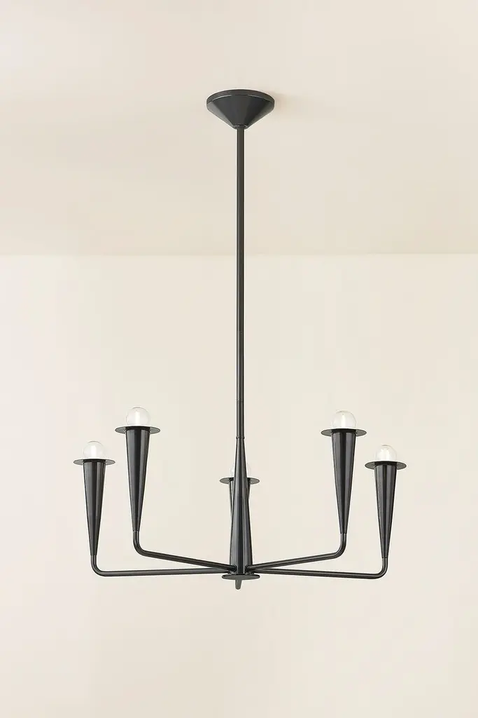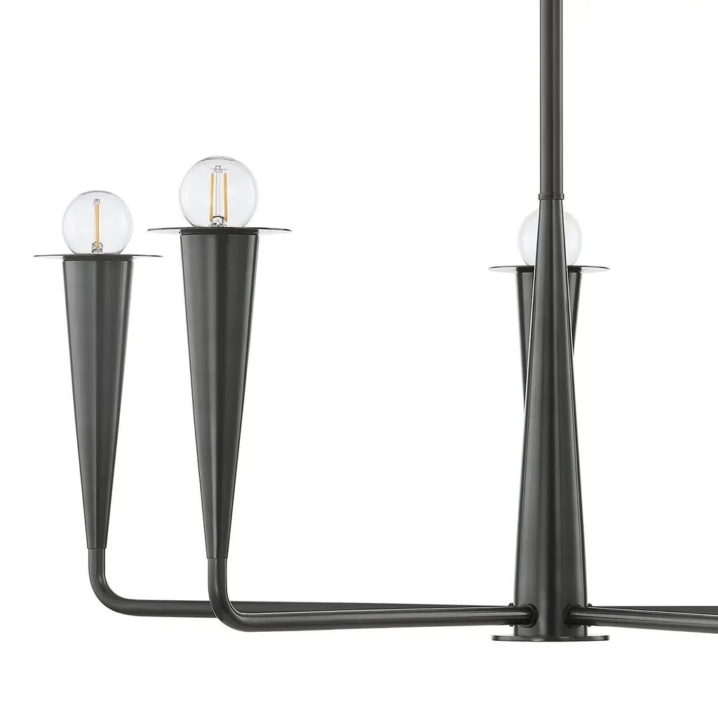 Bring the drama with this botanical-meets-industrial beauty. Slender candlesticks resembling torches support clear glass orbs as they illuminate modern interiors with a sense of retro flair. Available as a sconce or chandelier in two sizes. Part of the collection.