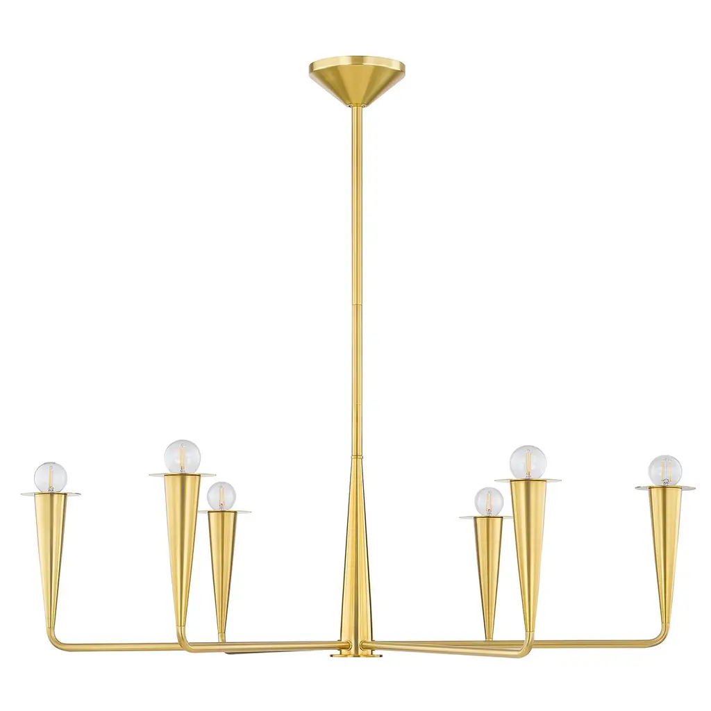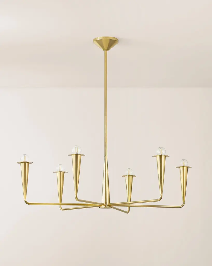 Bring the drama with this botanical-meets-industrial beauty. Slender candlesticks resembling torches support clear glass orbs as they illuminate modern interiors with a sense of retro flair. Available as a sconce or chandelier in two sizes. Part of the collection.