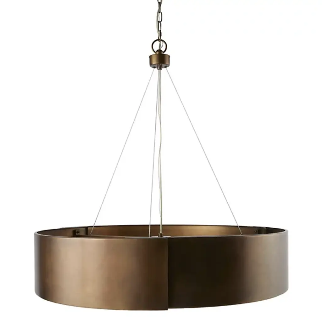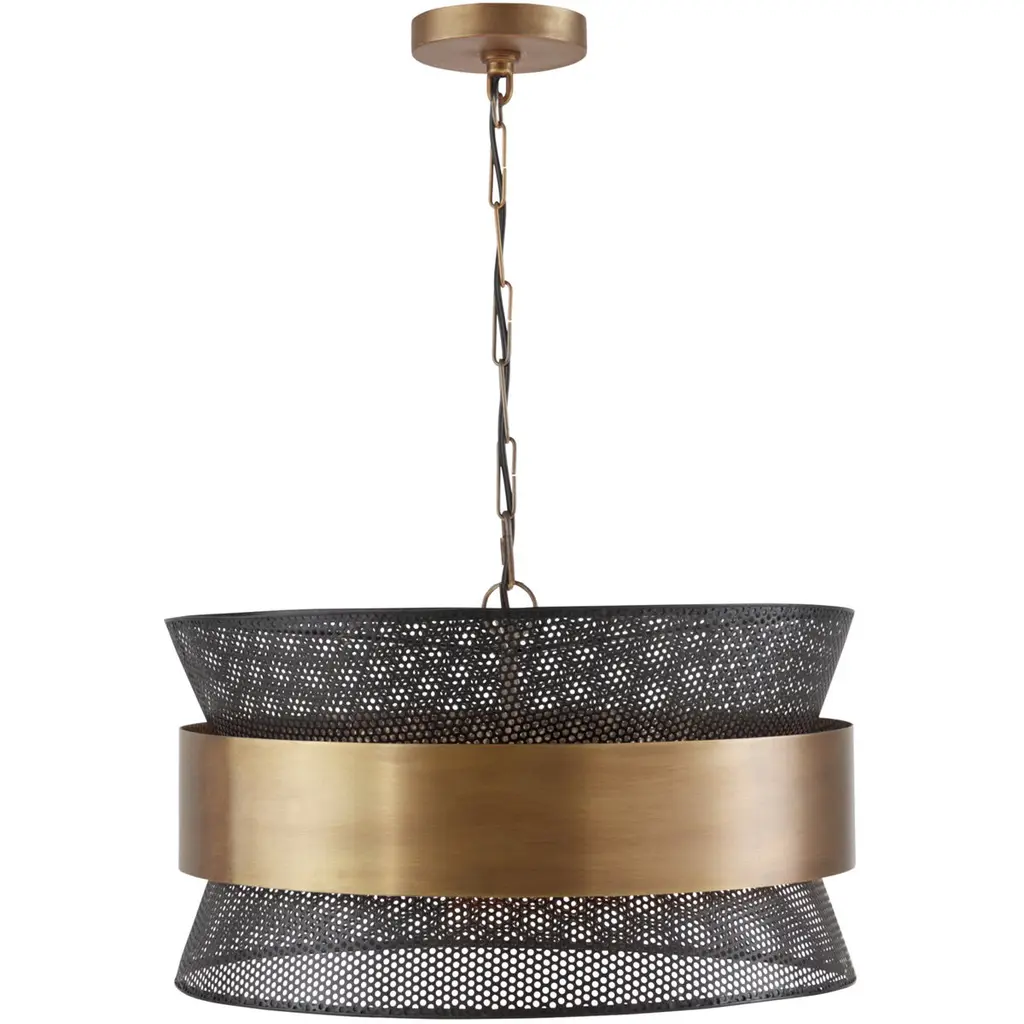 Create layers of appeal in your interior décor with the Dante Chandelier by Arteriors. To a casual glance, this chic fixture looks like a straightforward and minimalistic drum pendant. Look again, however, and its true appeal comes forth through its overlapping circumferential bands and the glow of 5 individual lights softened by a frosted acrylic diffuser.