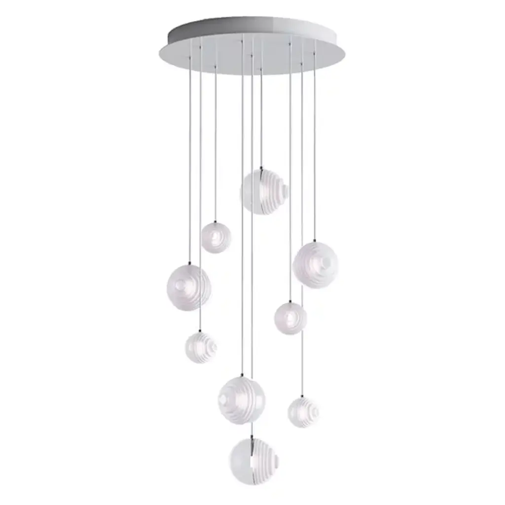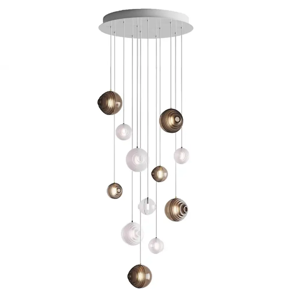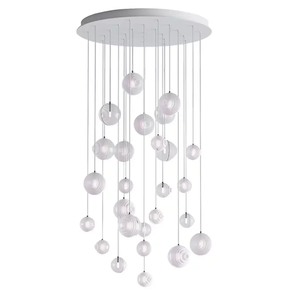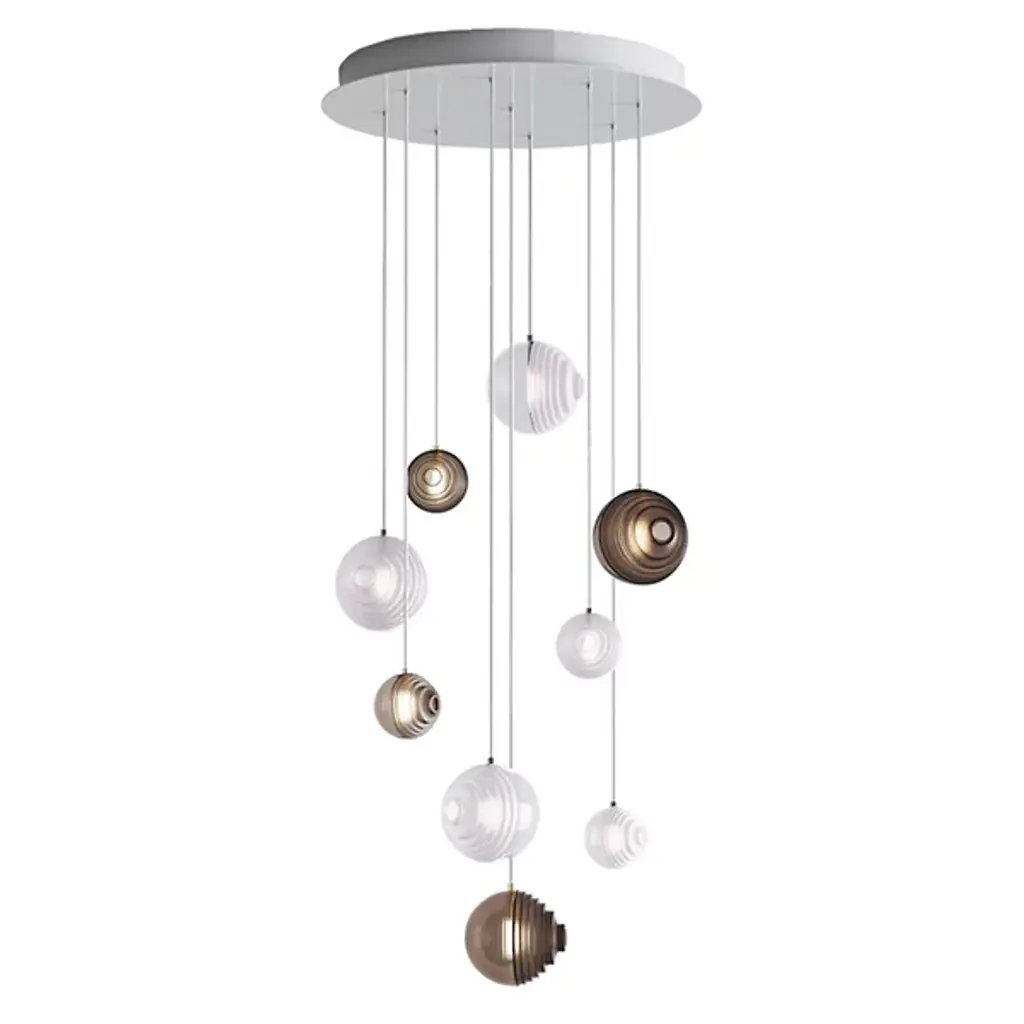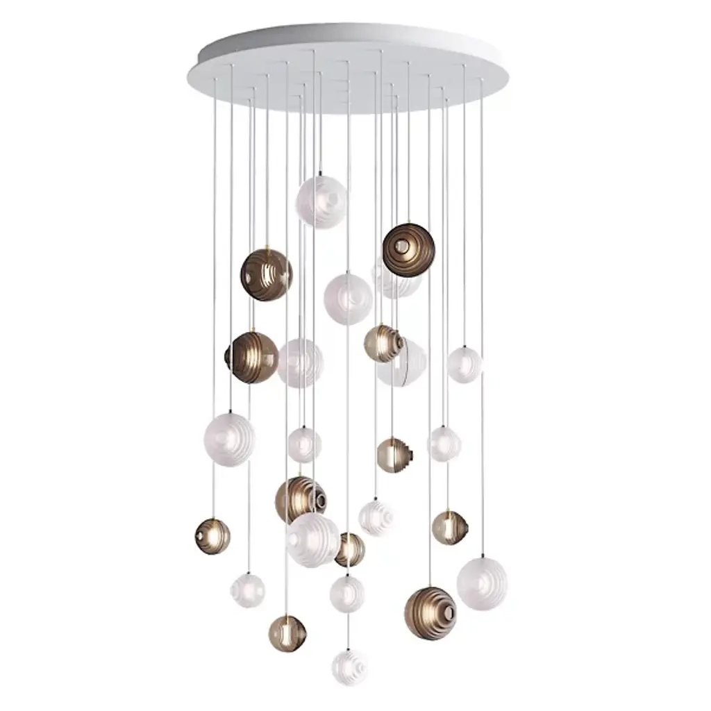 The Dark & Bright Star Chandelier from Bomma captures the essence of distant stars, merging exquisite design and craftsmanship into a compact yet stunning fixture. A central light source glows through mouth-blown glass, illuminating a precisely cut crystal star. The sconce masterfully contrasts light and shadow, blending the organic beauty of traditional handcrafting with crystal’s glossy sheen and smooth matte finish. This celestial-inspired piece brings a touch of elegance and cosmic charm to any space it enhances.