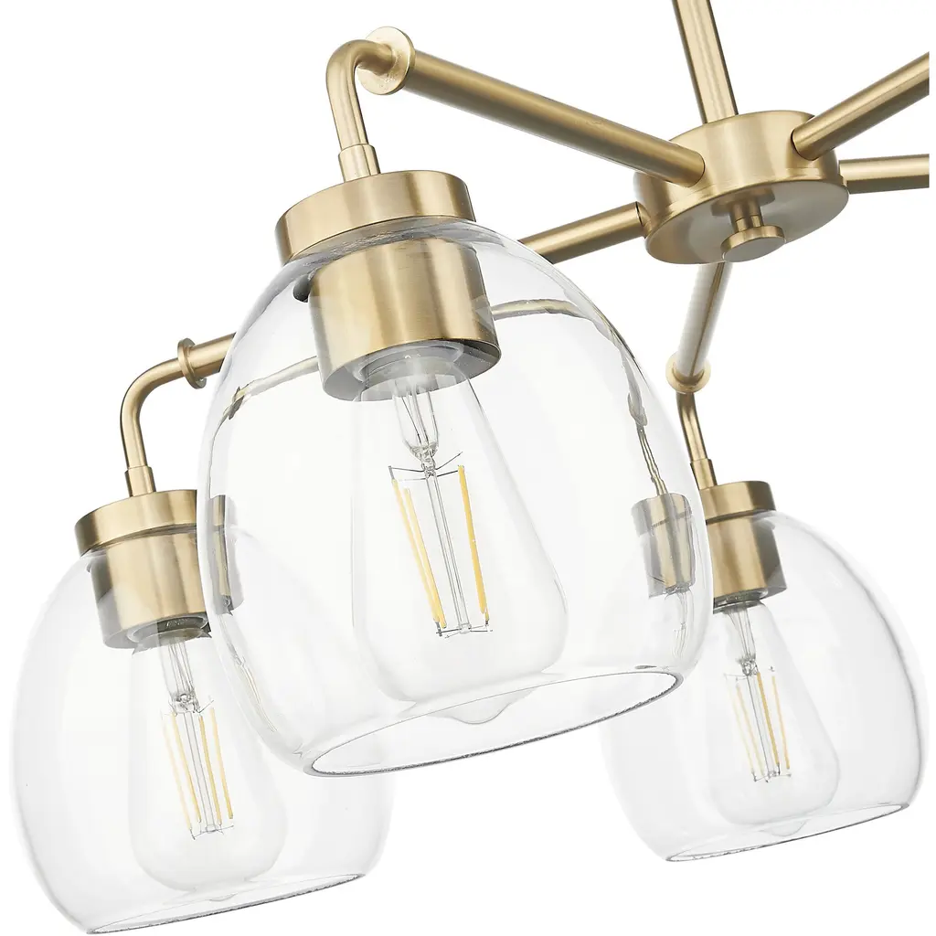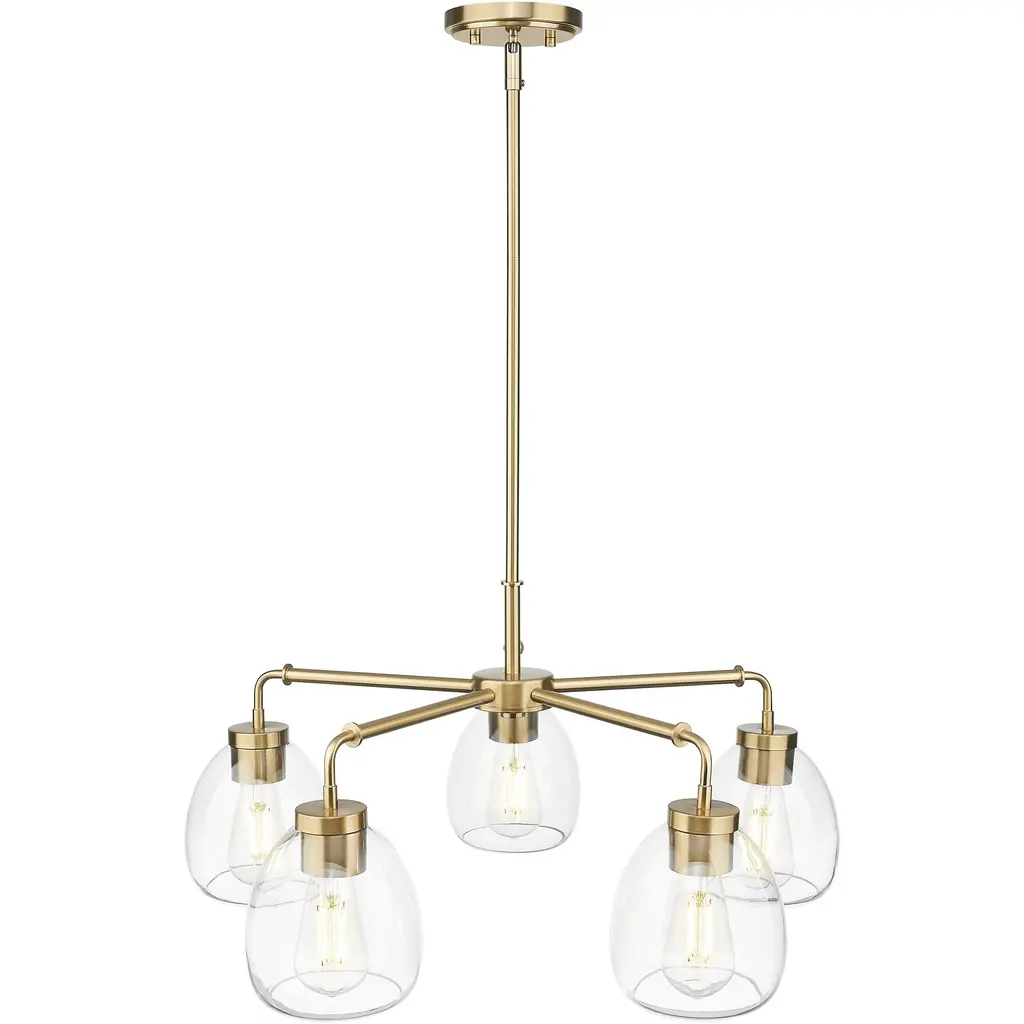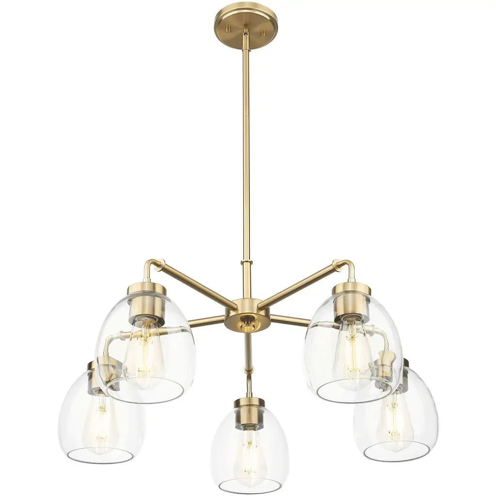 Illuminate your decor style with this five light Dawes chandelier from Acclaim Lighting. The design features a brass plated metal finish and clear glass. Simple, yet sophisticated, the design is ideal for kitchen and dining areas.