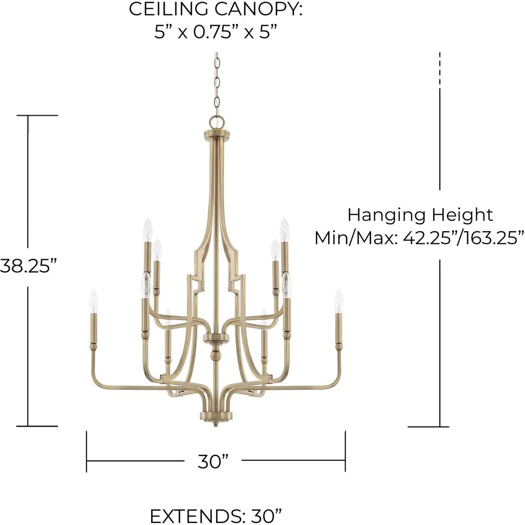 Dawson 10 Light 30 Inch Aged Brass Chandelier Ceiling Light