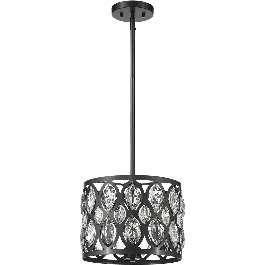 From the Dealey collection comes this elegant and sophisticated three-light chandelier. This chandelier features a matte black steel shade with a striking ellipse punched pattern set with glimmering clear crystal pendants that add a touch of tradition and glamour. Hang this chandelier above a table in a contemporary dining room or in an entryway foyer for a dramatic look.