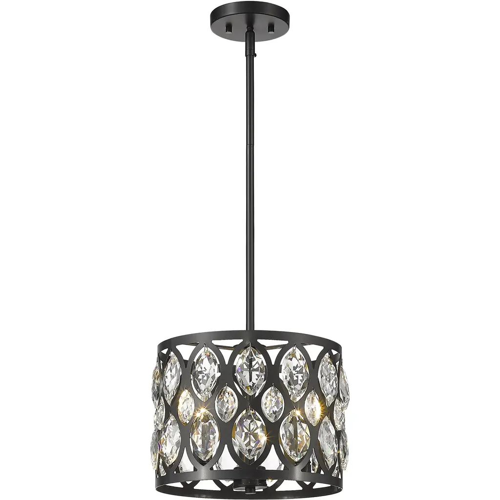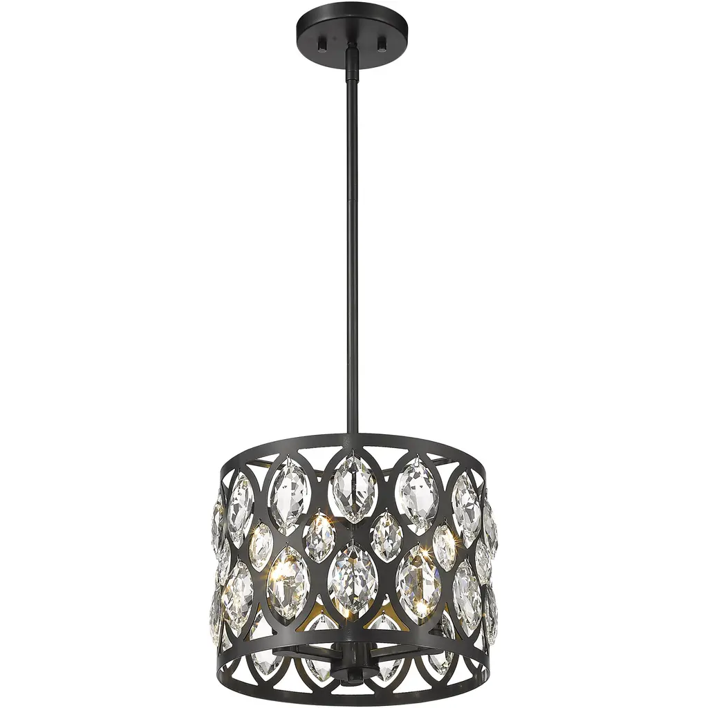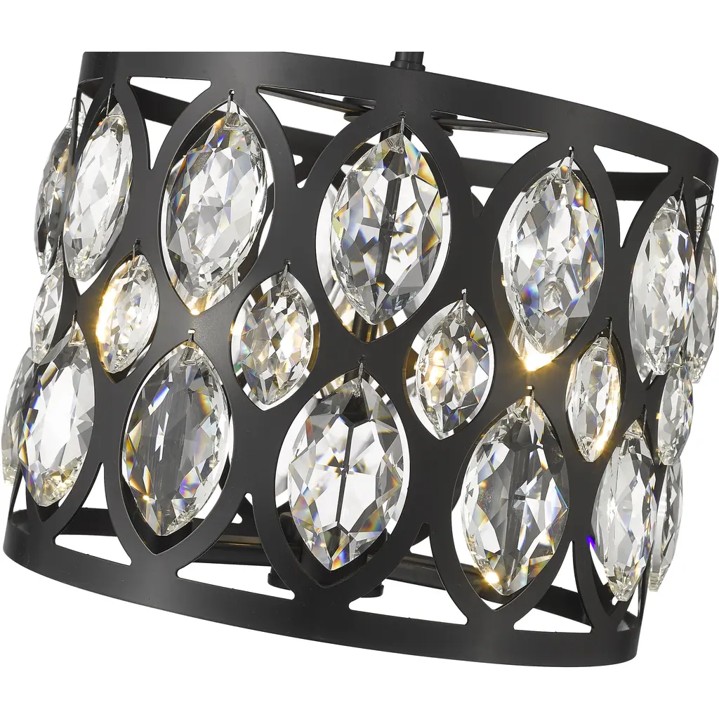 From the Dealey collection comes this elegant and sophisticated three-light chandelier. This chandelier features a matte black steel shade with a striking ellipse punched pattern set with glimmering clear crystal pendants that add a touch of tradition and glamour. Hang this chandelier above a table in a contemporary dining room or in an entryway foyer for a dramatic look.