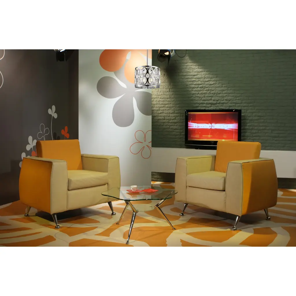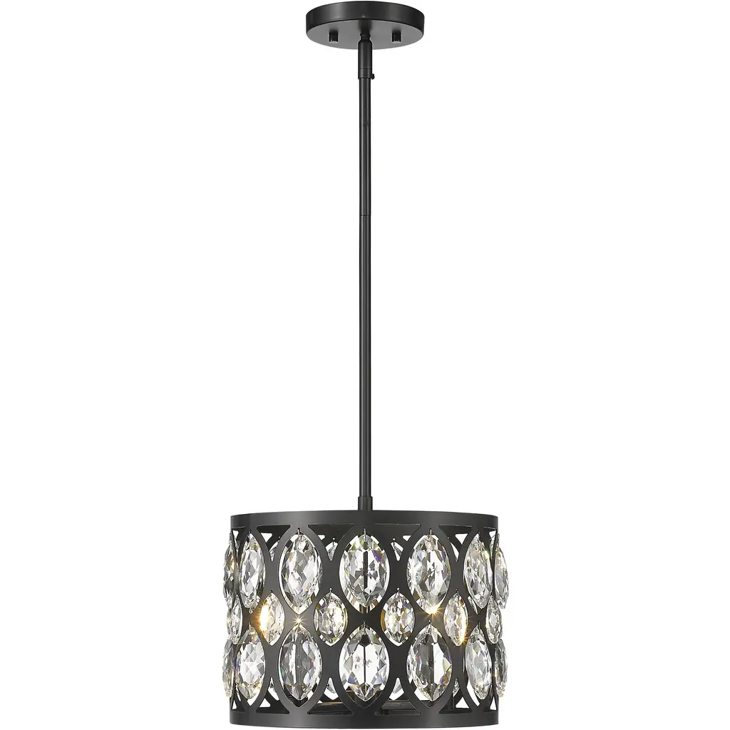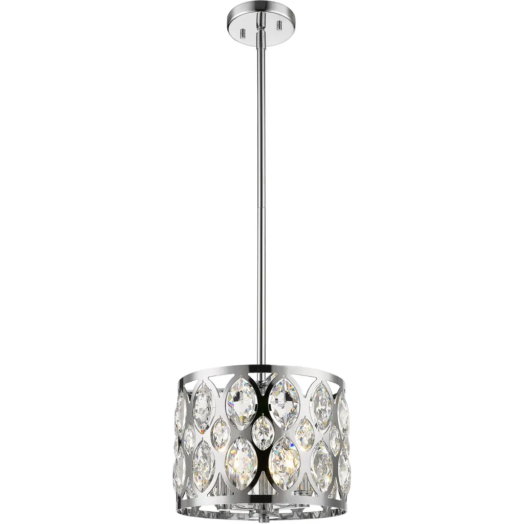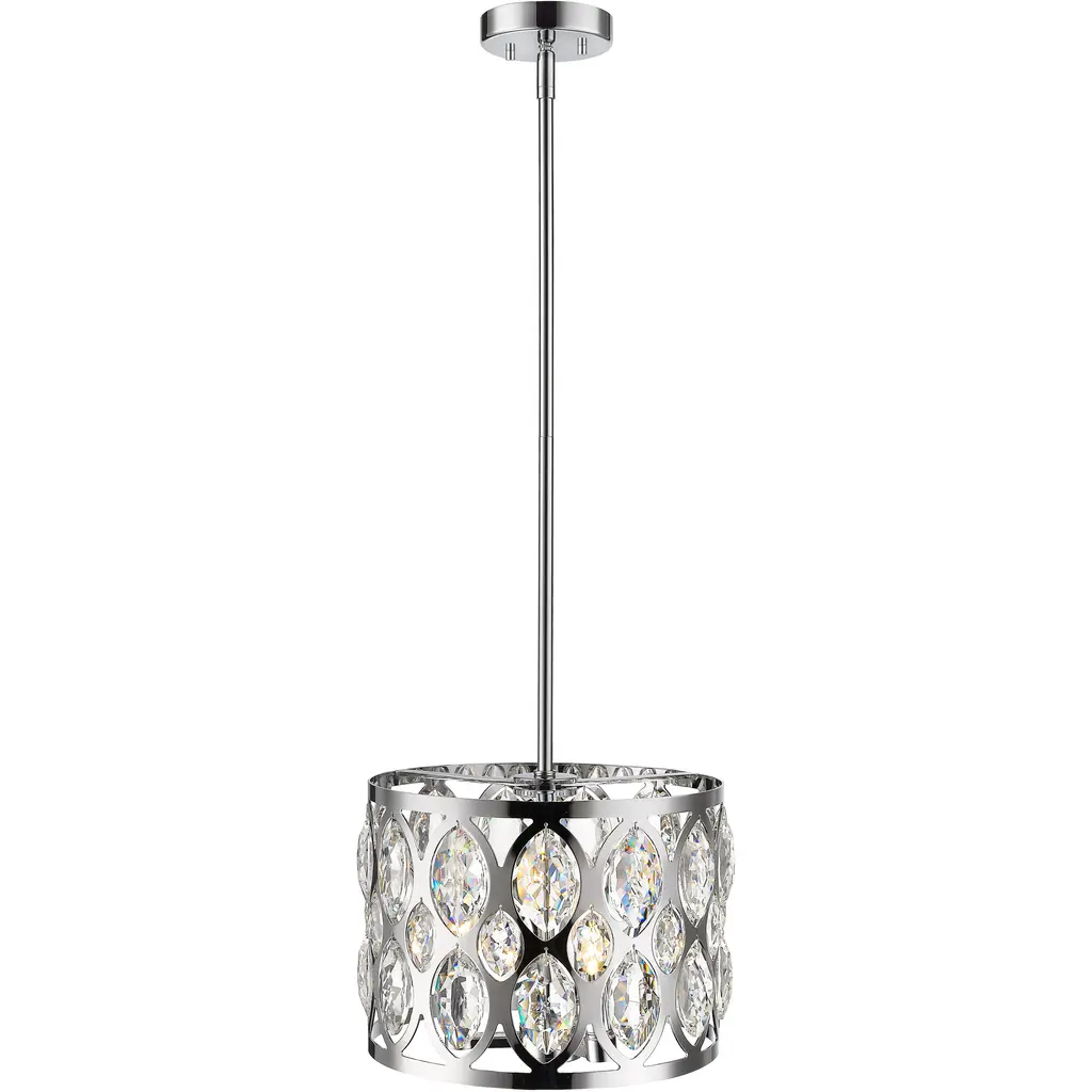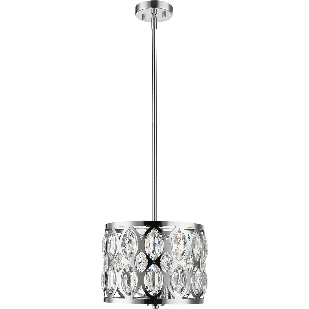 The rounded shade from this hanging ceiling light features delicate glittering crystal accents. Streamline a chic dining or living room with the bright chrome finish.