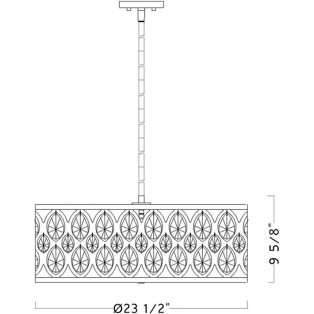 From the Dealey collection comes this elegant, round six-light chandelier. Featuring a striking ellipse-carved steel shade circling each of the six candelabras, this chandelier also features a dark matte black finish that accentuates the dangling, shimmering clear crystal pendants that disperse the light. Hang this alluring chandelier above a contemporary dining room table to lend a traditional touch.
