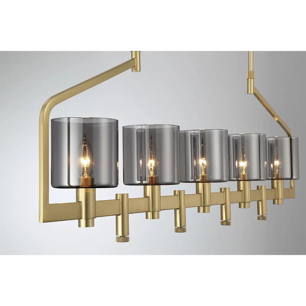 Imagine comfortable, well-worn leather armchairs and half-sipped glasses of cognac on mahogany side tables. Now insert the smoked glass and soft gold elegance of Decato. The knurled details and angular lines compliment mood-filled settings.