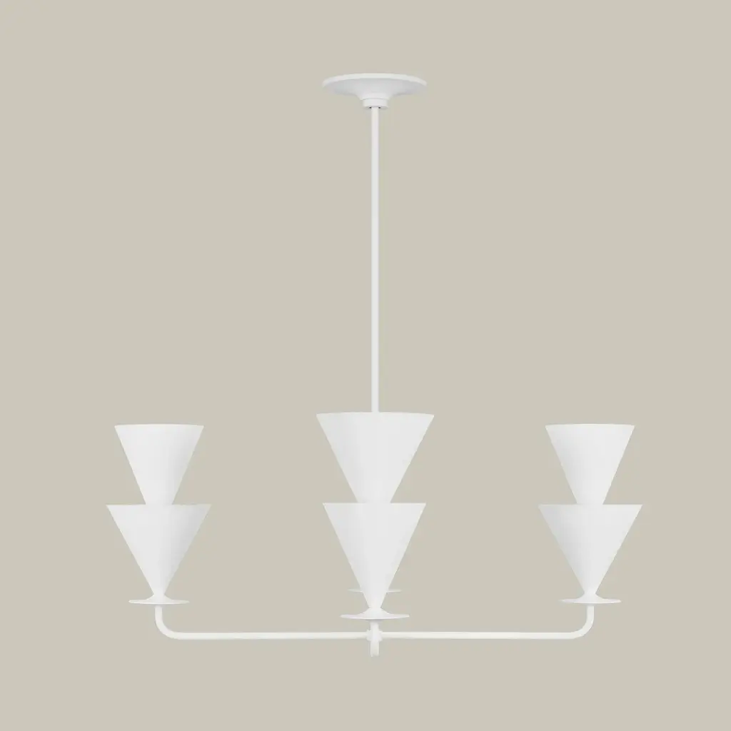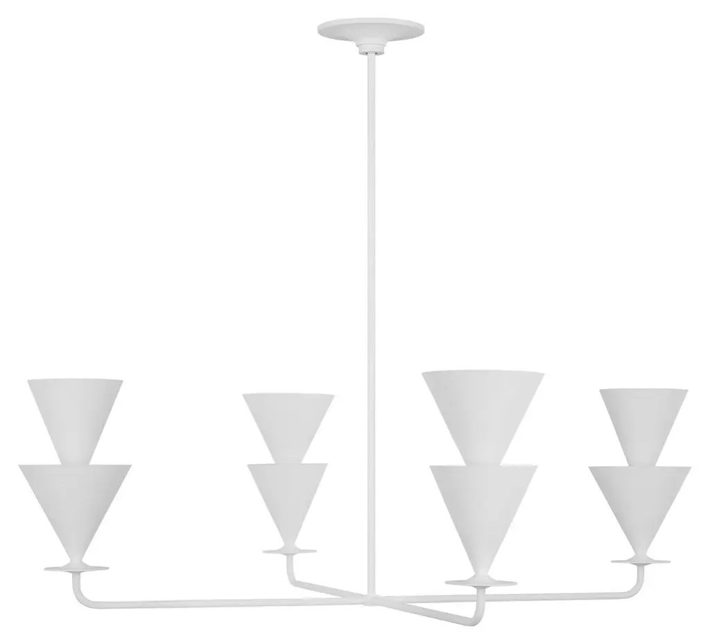 Our 2-light single-tier chandelier is just the right way to illuminate your living room or kitchen island with laid-back mod style. The fixture is crafted from steel with a textured plaster finish that brings a summery mid-century vibe to your space. Matching inverted cone shades surround corresponding bulbs, which are sold separately and compatible with dimmer switches to move you effortlessly from day to night. It hangs with the help of a height-adjustable rod and a canopy that works with flat or sloped ceilings. And since it's damp-rated, it's safe to install just about anywhere.