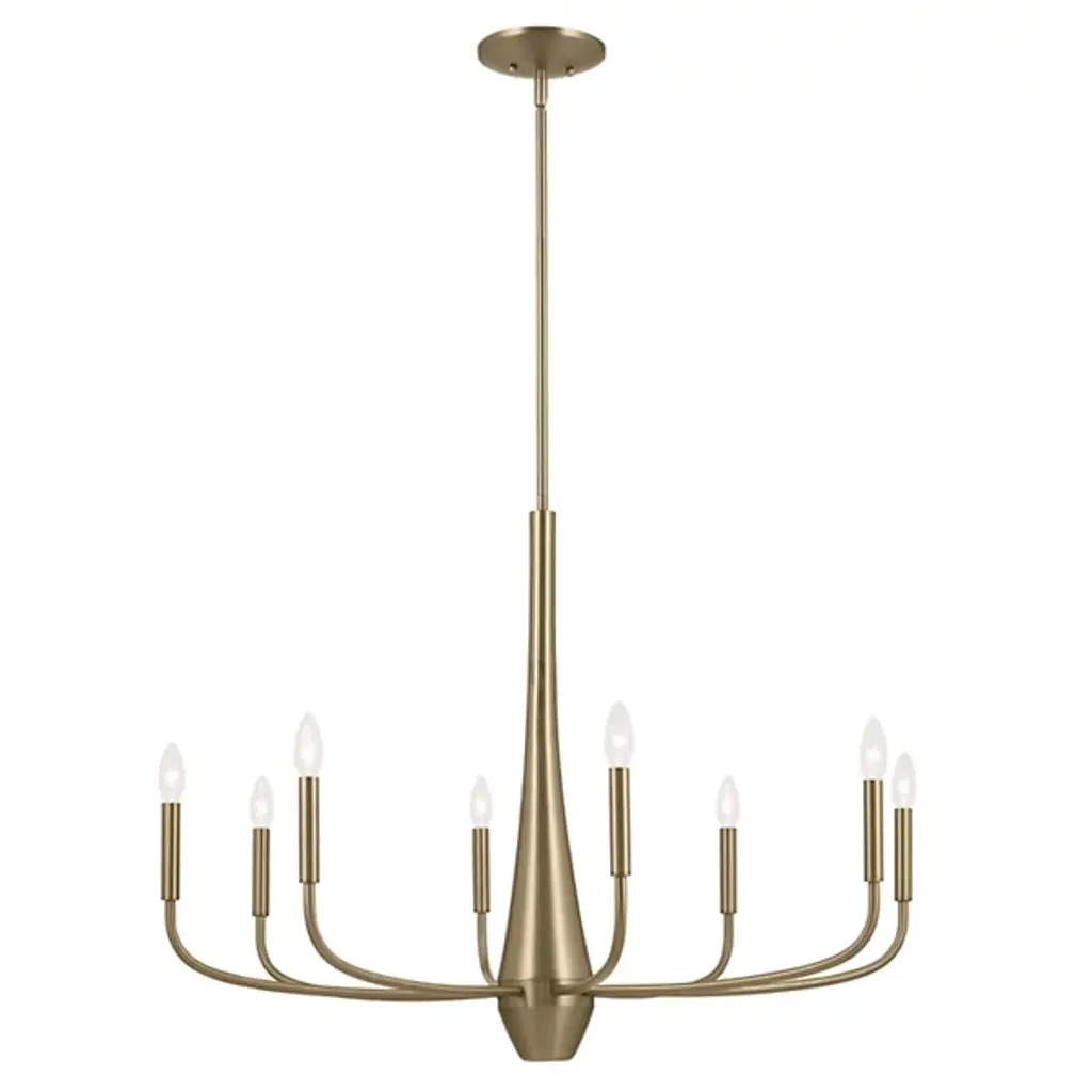 The Deela Chandelier by Kichler is a modern and stylish lighting fixture that is perfect for any room in your home. It is compatible with sloped ceilings, making it suitable for everything from dining rooms to foyers. The column is topped with a clear acrylic diffuser that creates a soft, ambient glow. Inspired by the simple, soft curves of a Ukrainian vase, its refined and modern artistic presence makes this your ideal signature statement piece.