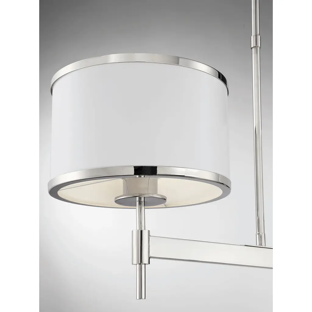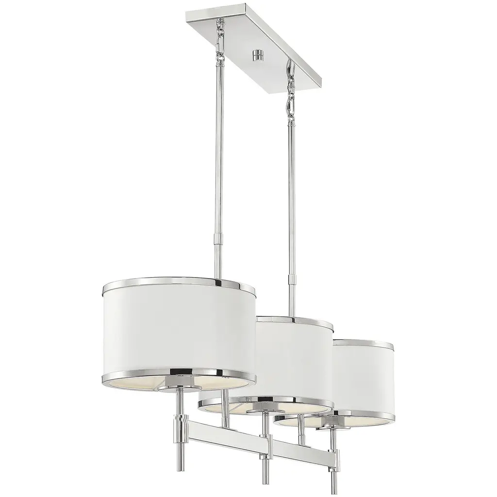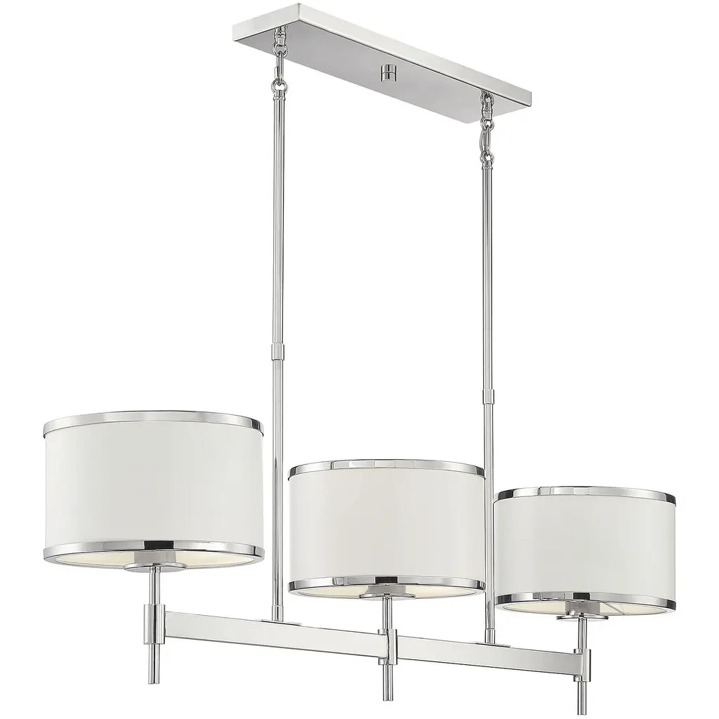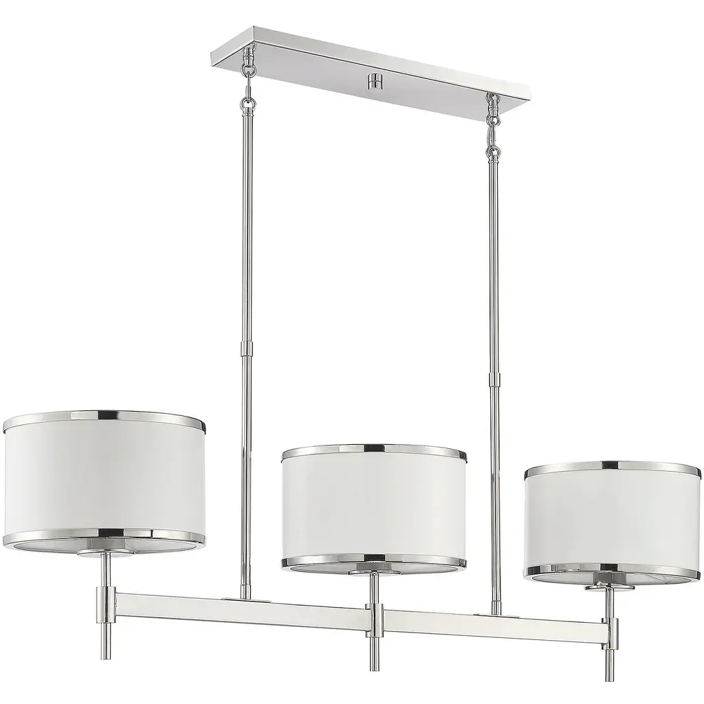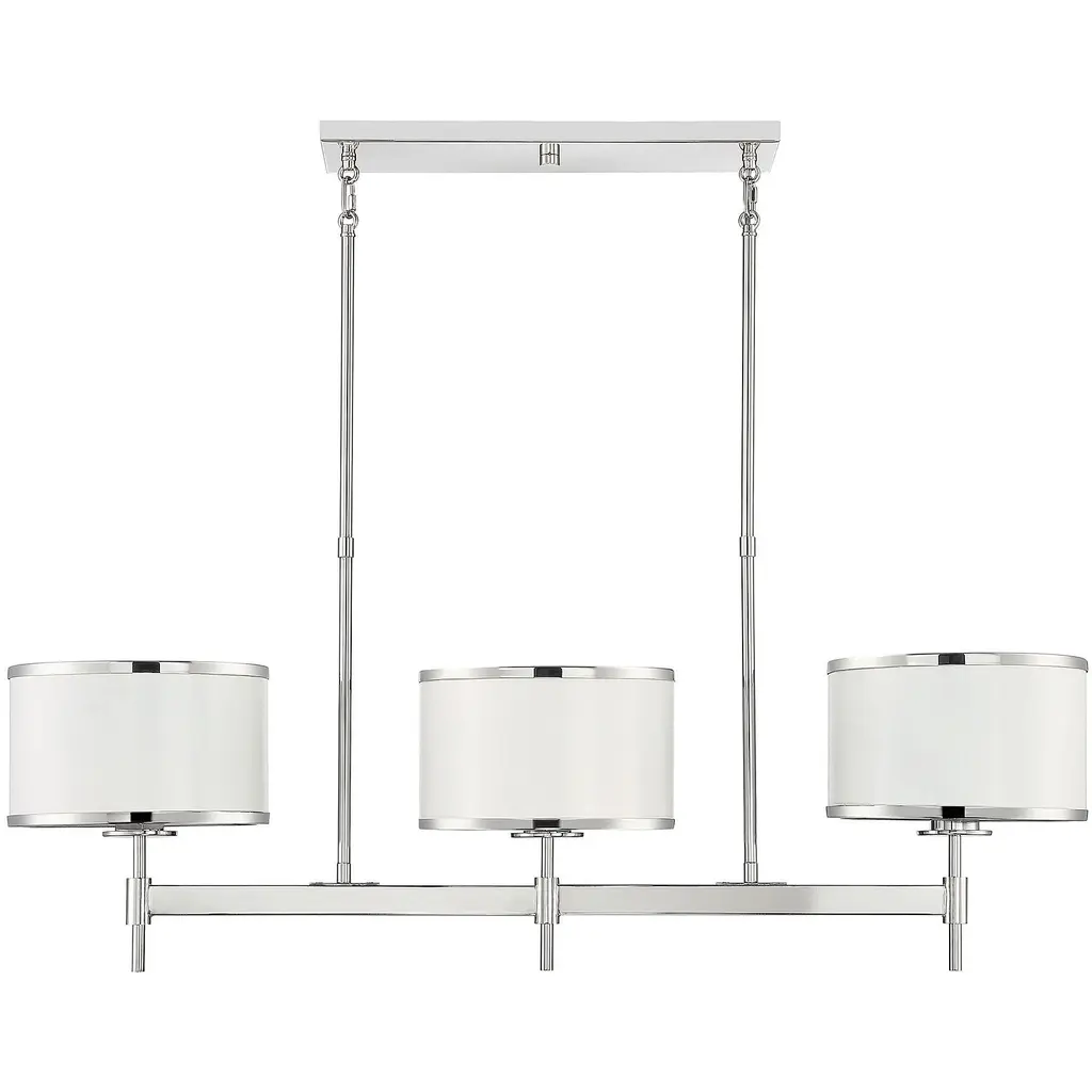 The Savoy House Delphi 3-light linear chandelier evokes the glamour of vintage Hollywood with its classic pairing of finishes. Finished in polished nickel with white accents. With an adjustable height from 17" to 63" and measuring 42" long x 10" wide, this linear chandelier provides ample illumination from three 60-watt standard size bulbs.