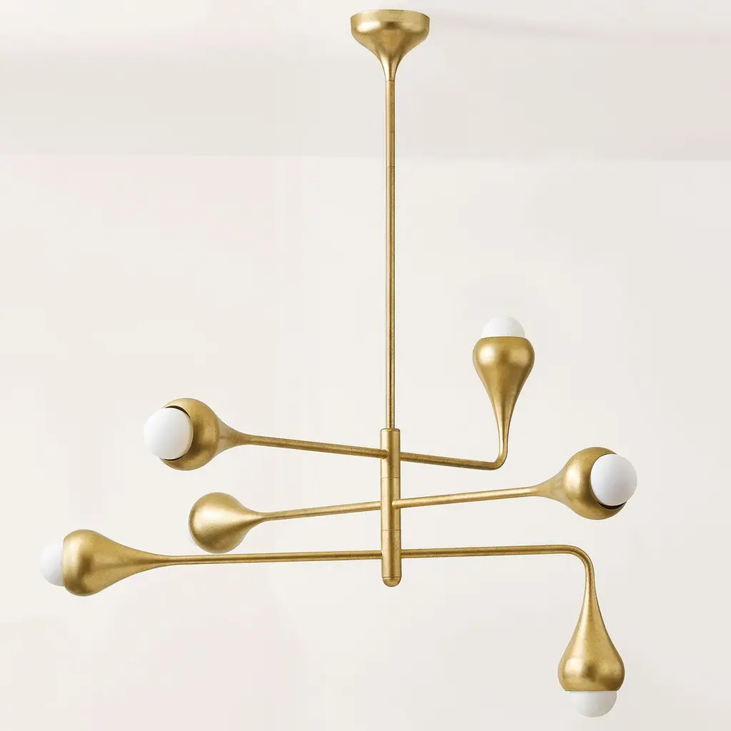 Inspired by an acorn growing on a branch, Delta features gently curved forms and soft Opal Shiny Glass shades. The refined, jewelry-like aesthetic of the fixture is elongated to create a surreal, otherworldly representation of nature. Delta is available as a sconce, chandelier, and pendant.