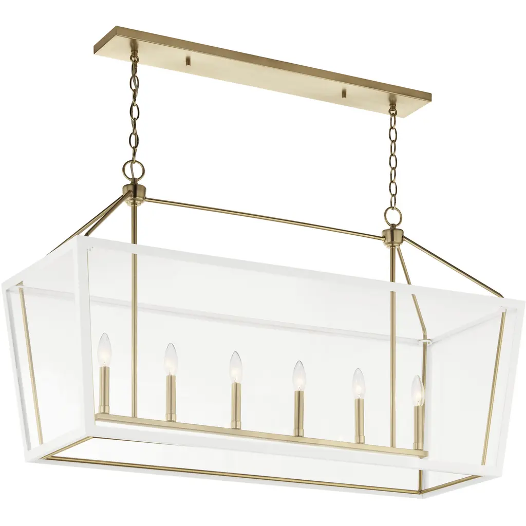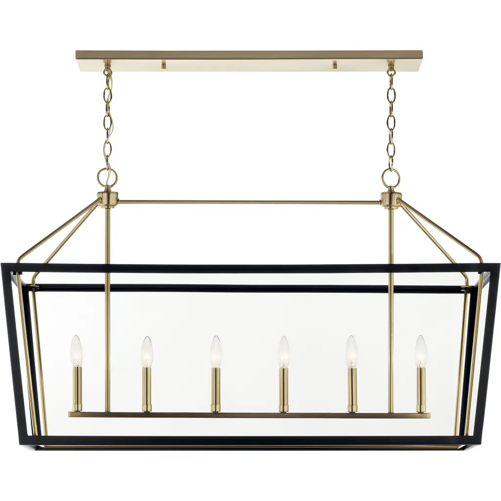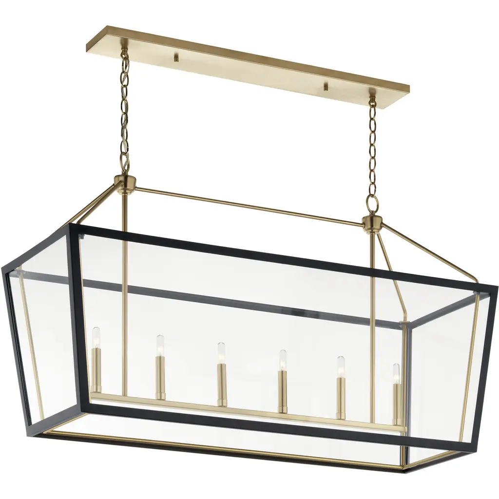 Delvin 44 Inch 6 Light Linear Chandelier with Clear Glass in Champagne Bronze and Black
