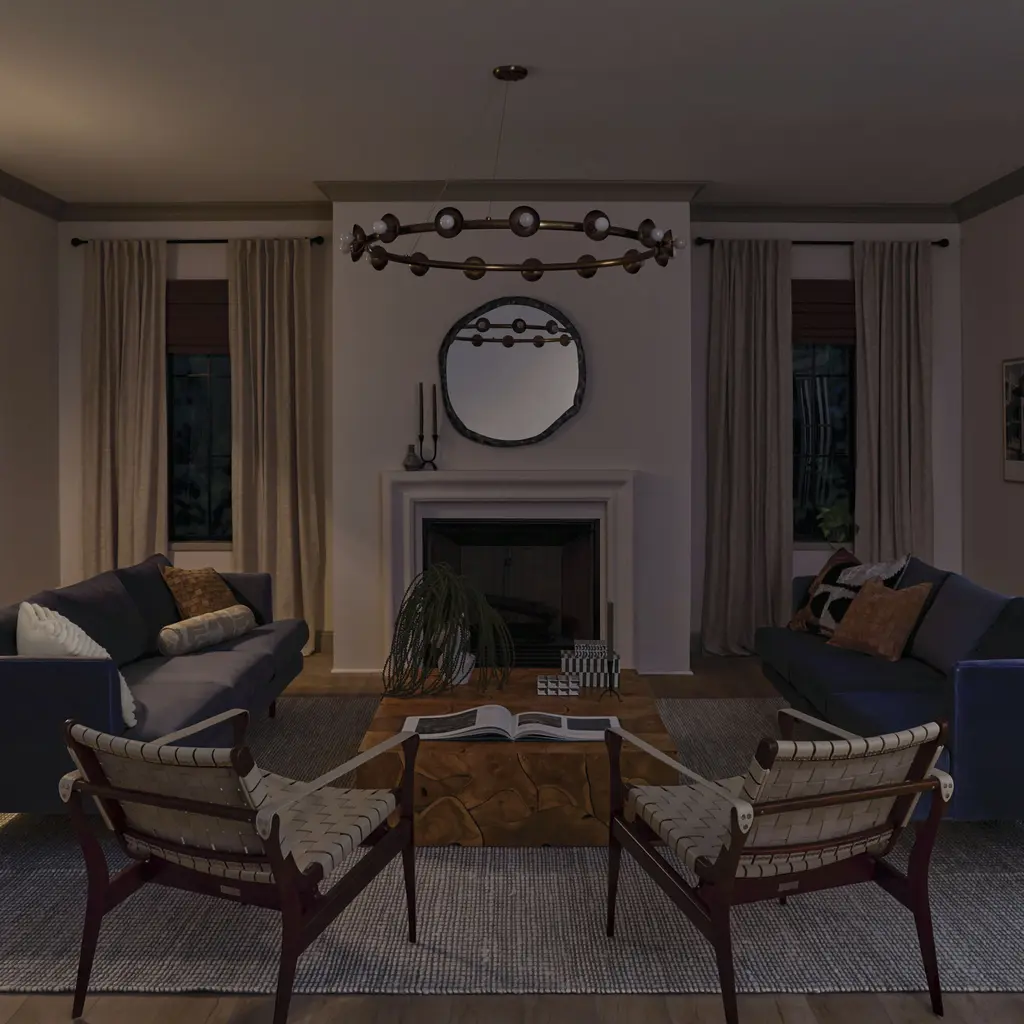 Delvin 6 Light 44.25 Inch Champagne Bronze With Black Chandelier Linear Ceiling Light, Single