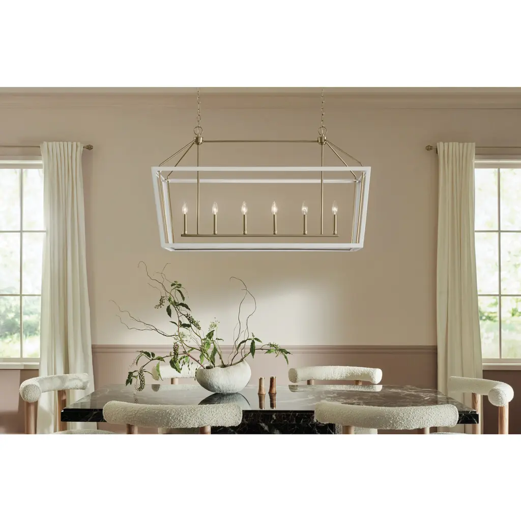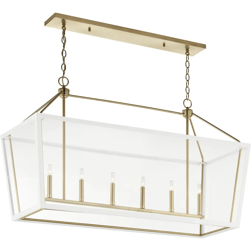 Delvin 44 Inch 6 Light Linear Chandelier with Clear Glass in Champagne Bronze and White