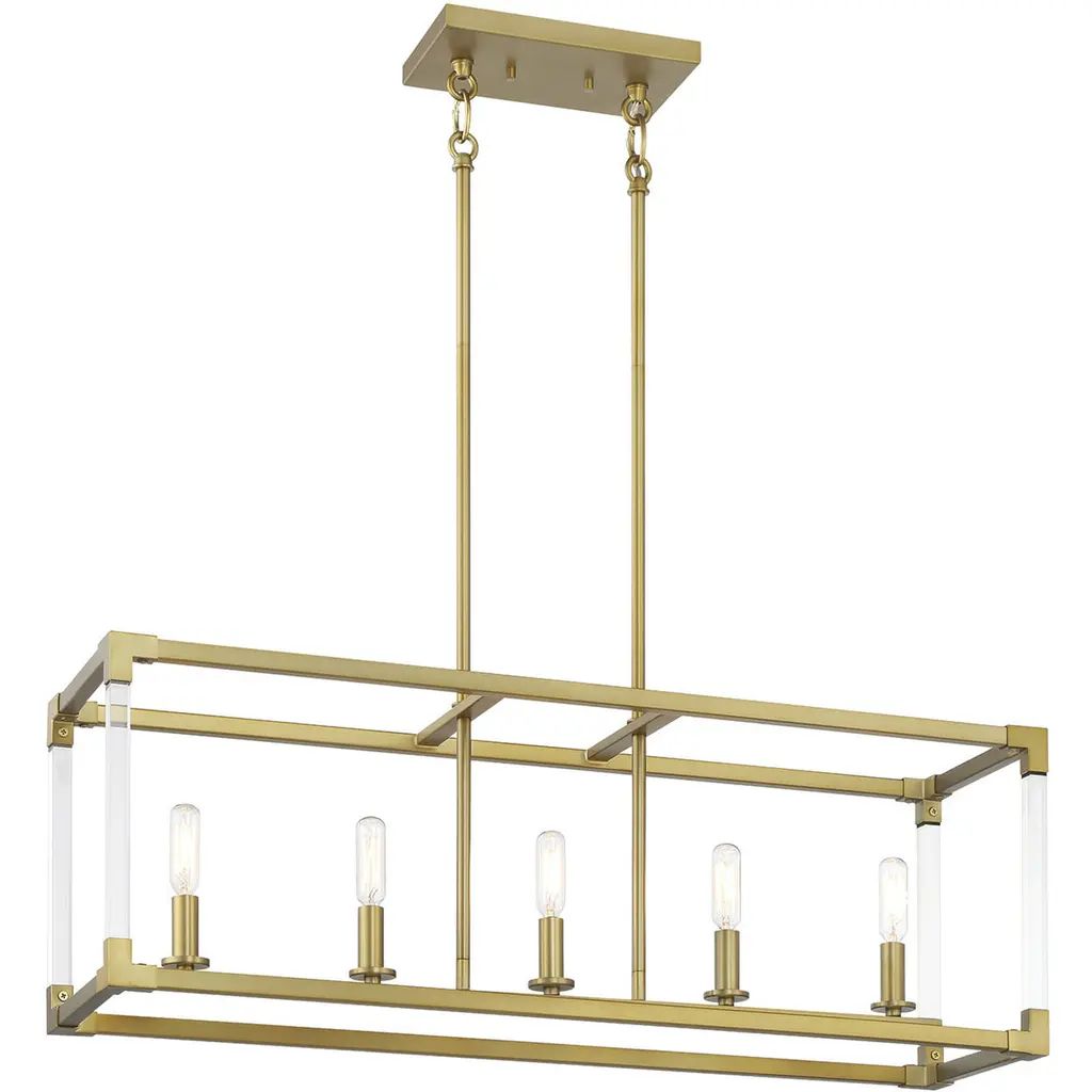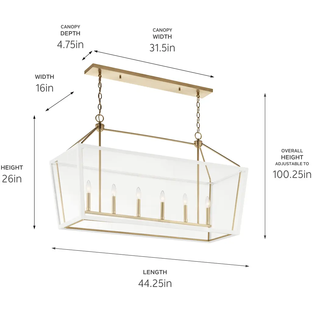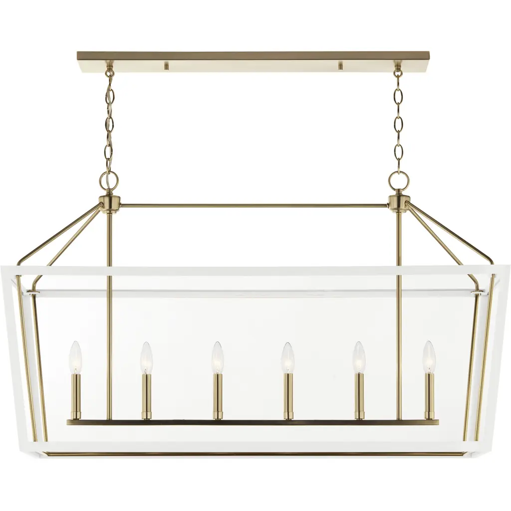 Delvin 44 Inch 6 Light Linear Chandelier with Clear Glass in Champagne Bronze and White