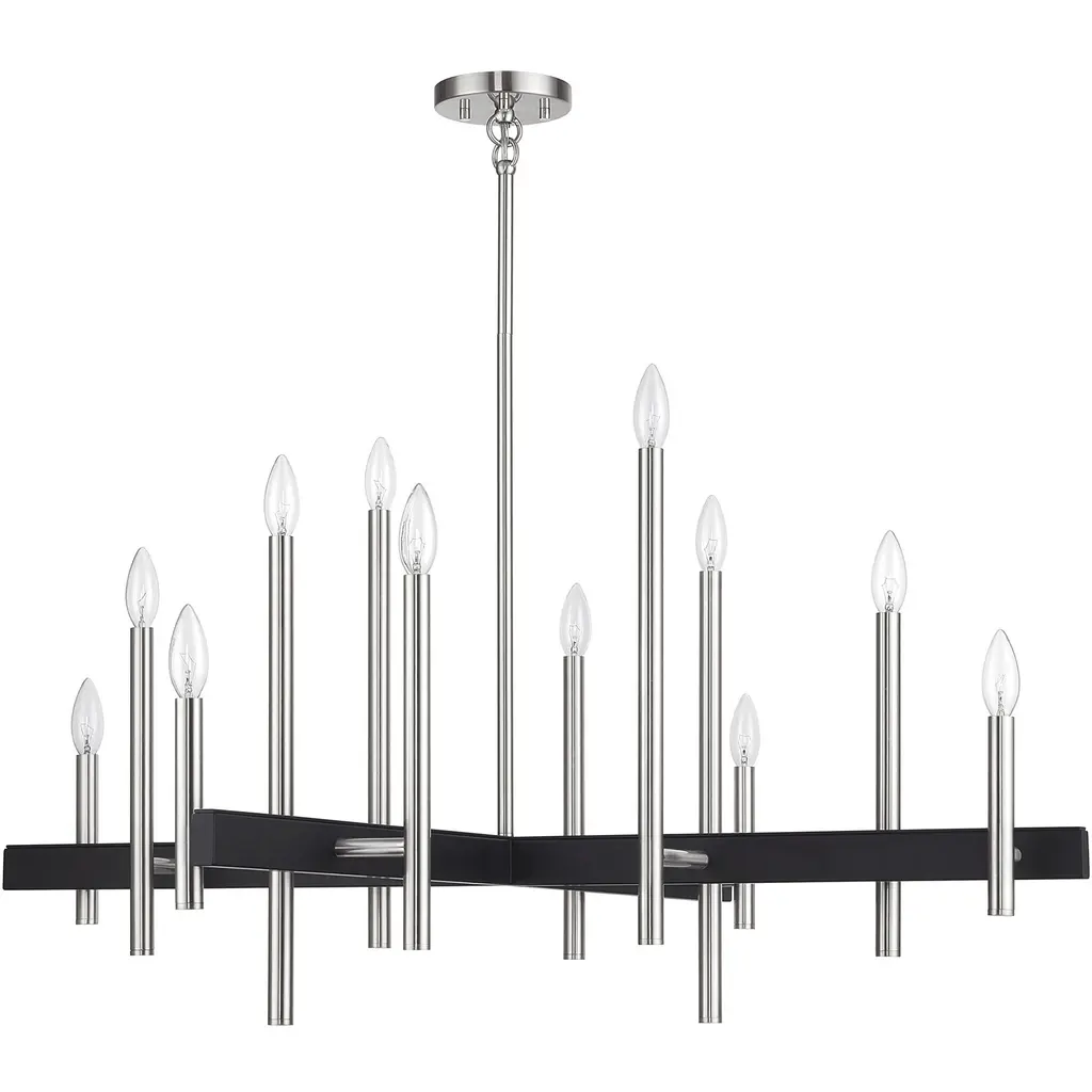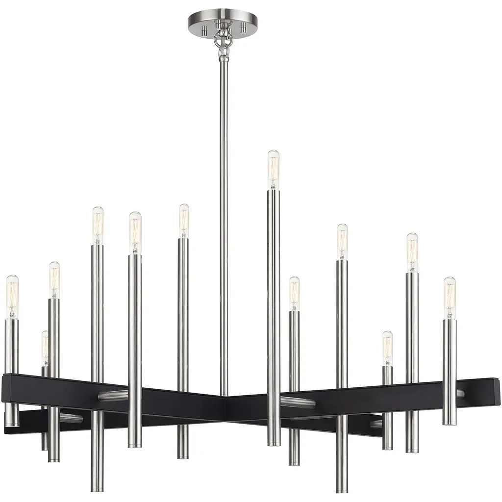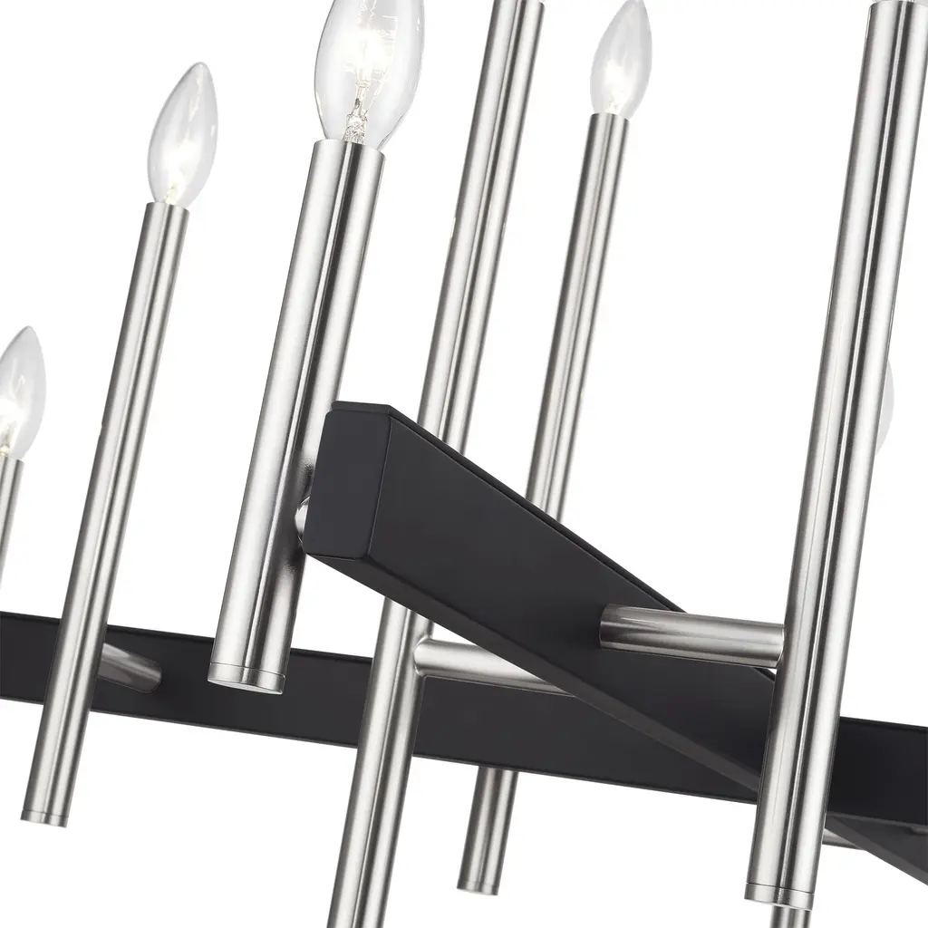 Denmark 12 Light Brushed Nickel With Black Accents Linear Chandelier Ceiling Light