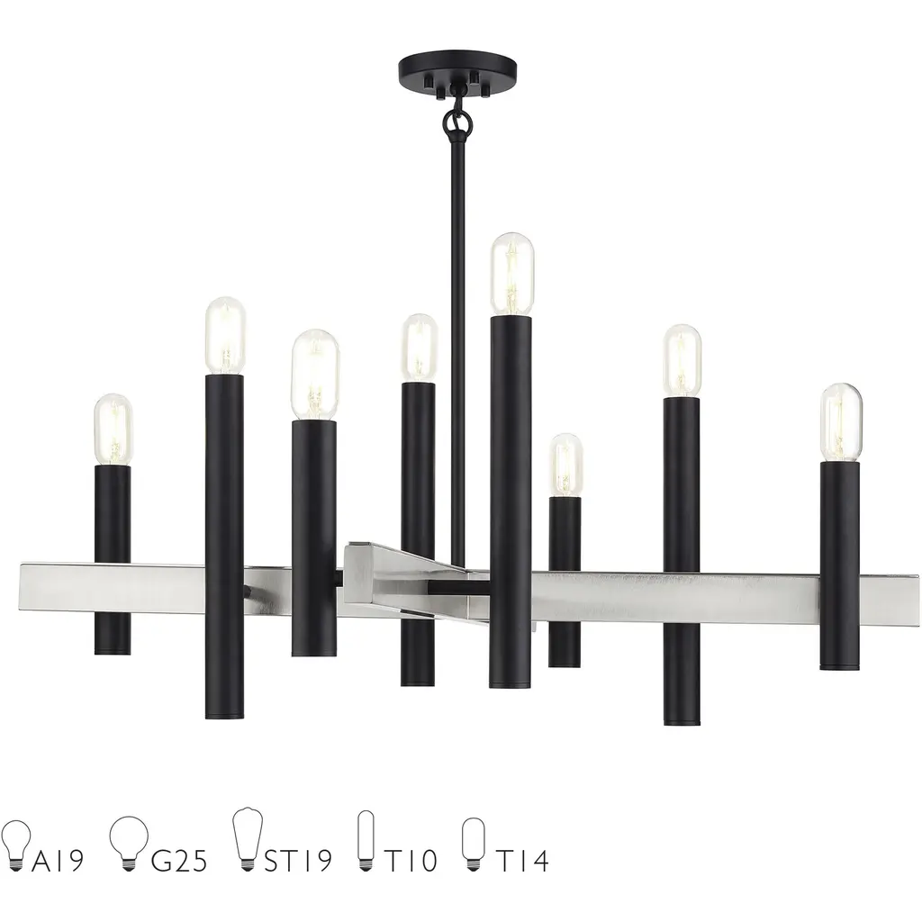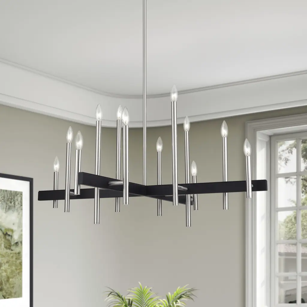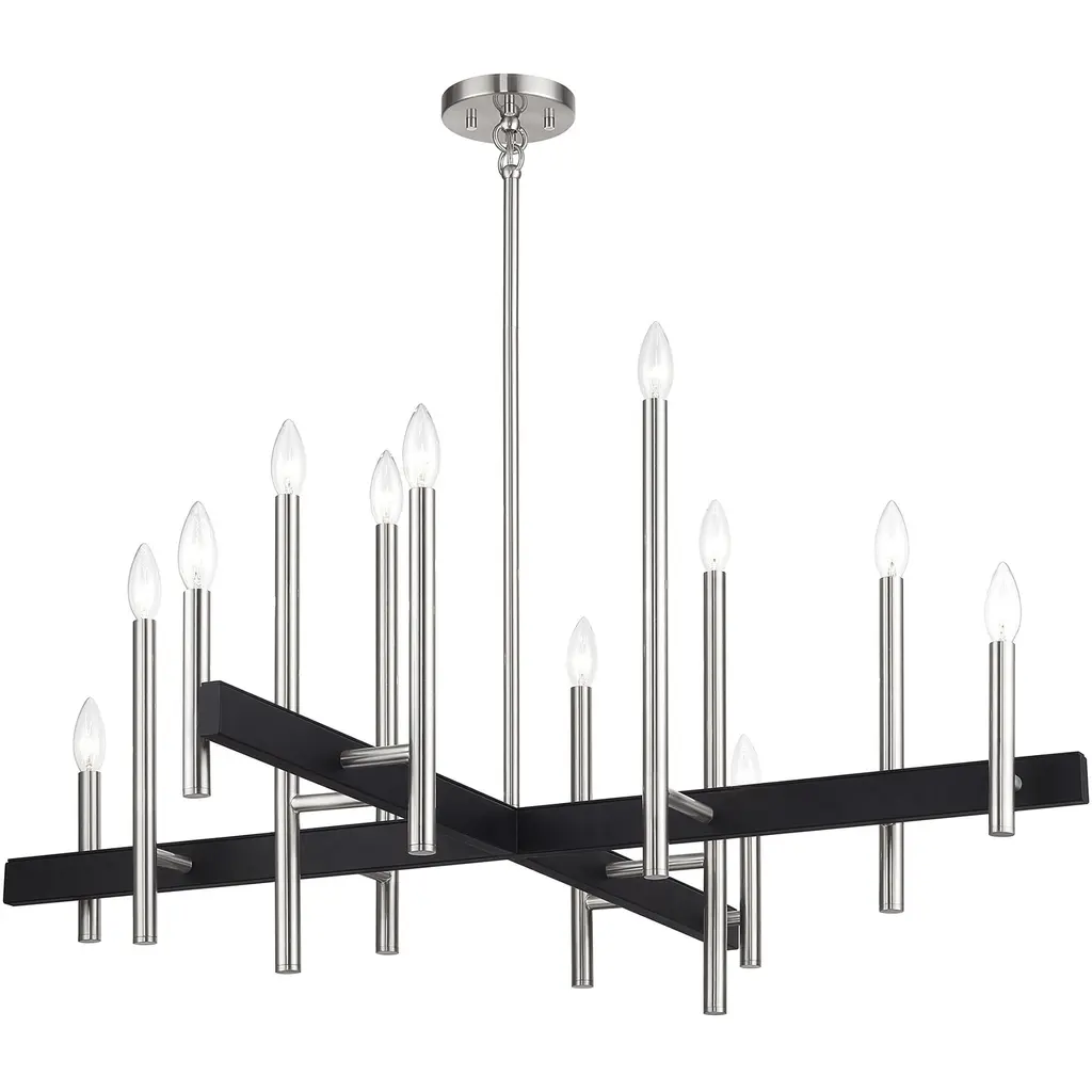 Denmark 12 Light Brushed Nickel With Black Accents Linear Chandelier Ceiling Light