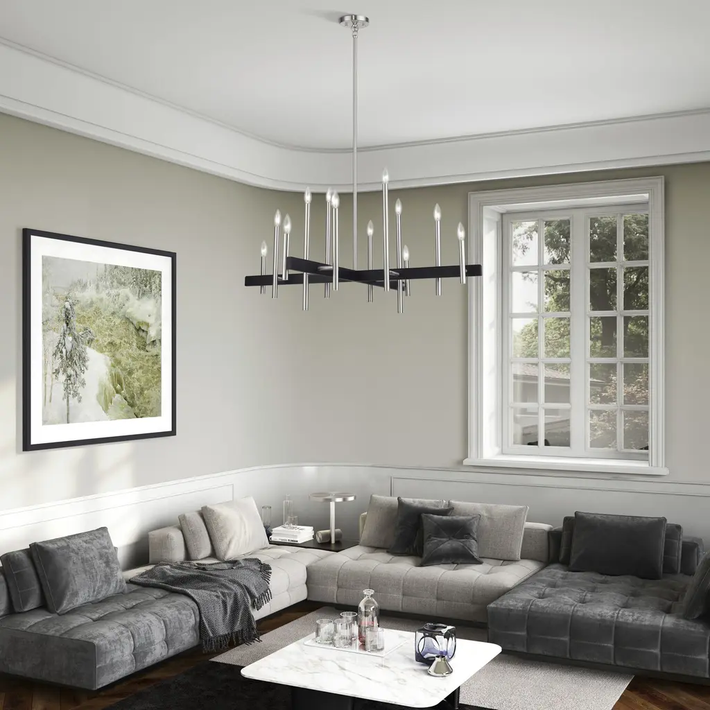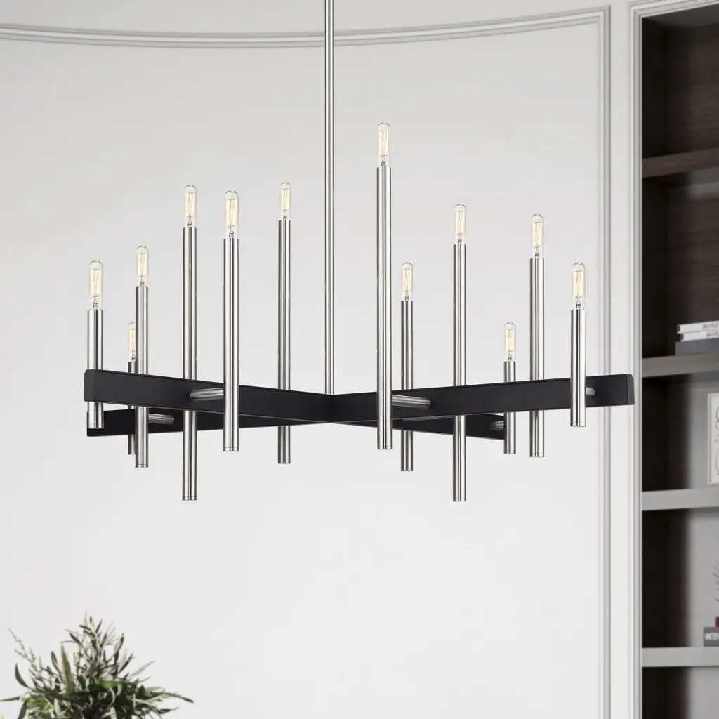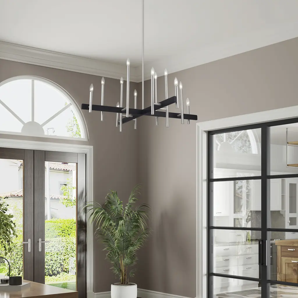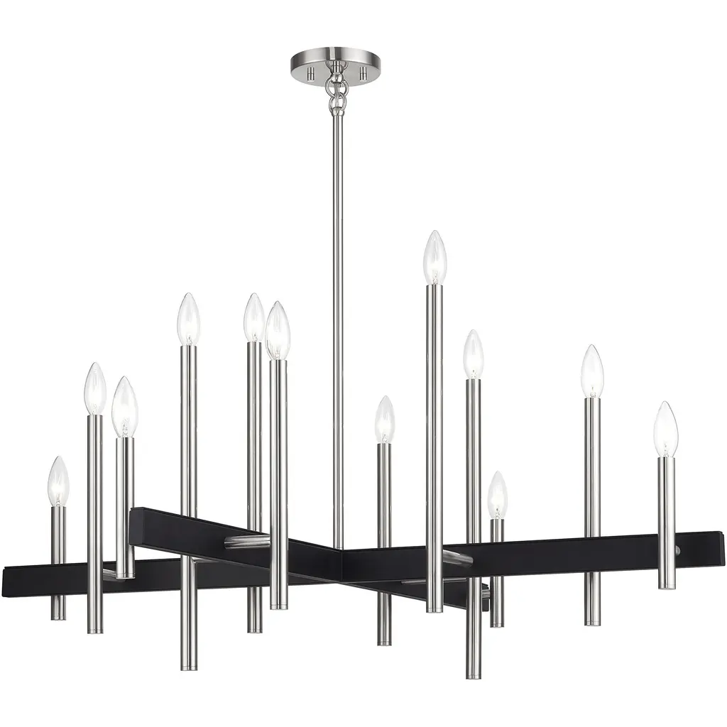 Denmark 12 Light Brushed Nickel With Black Accents Linear Chandelier Ceiling Light