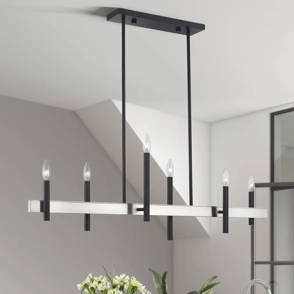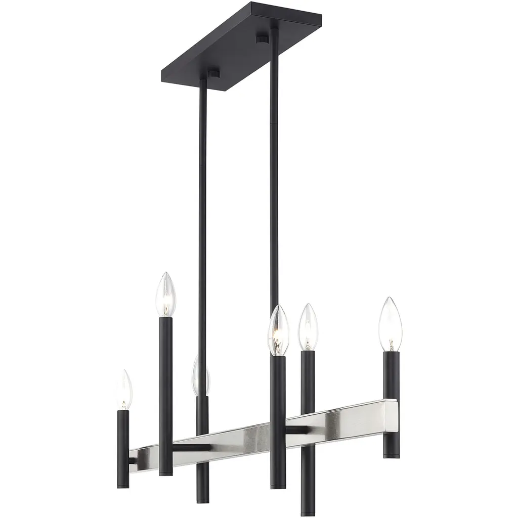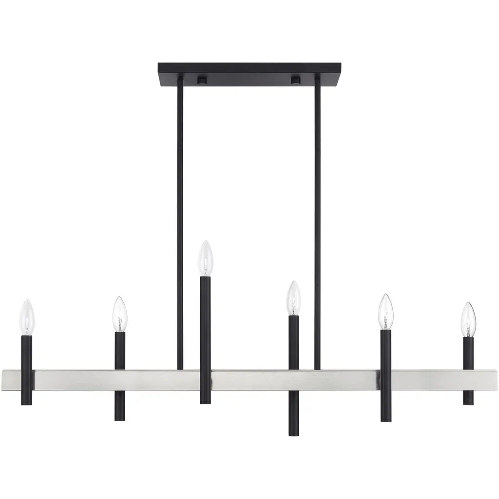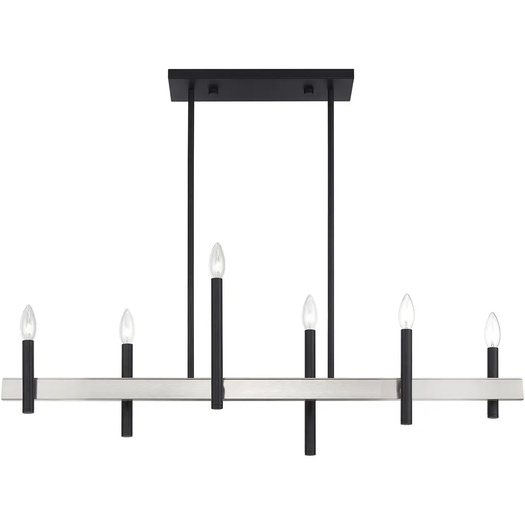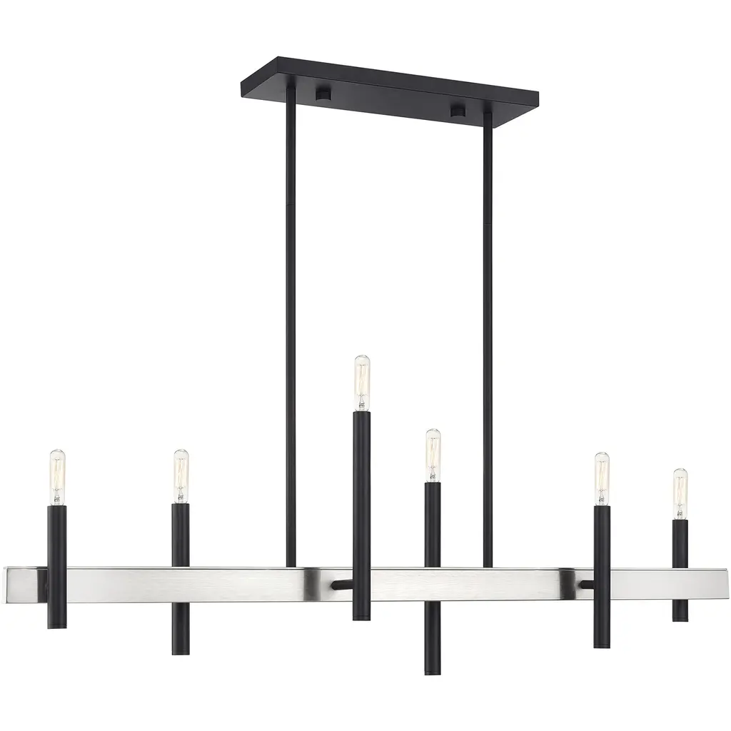 Denmark 6 Light 40 Inch Black With Brushed Nickel Accents Linear Chandelier Ceiling Light