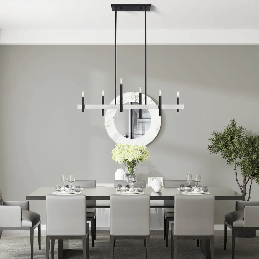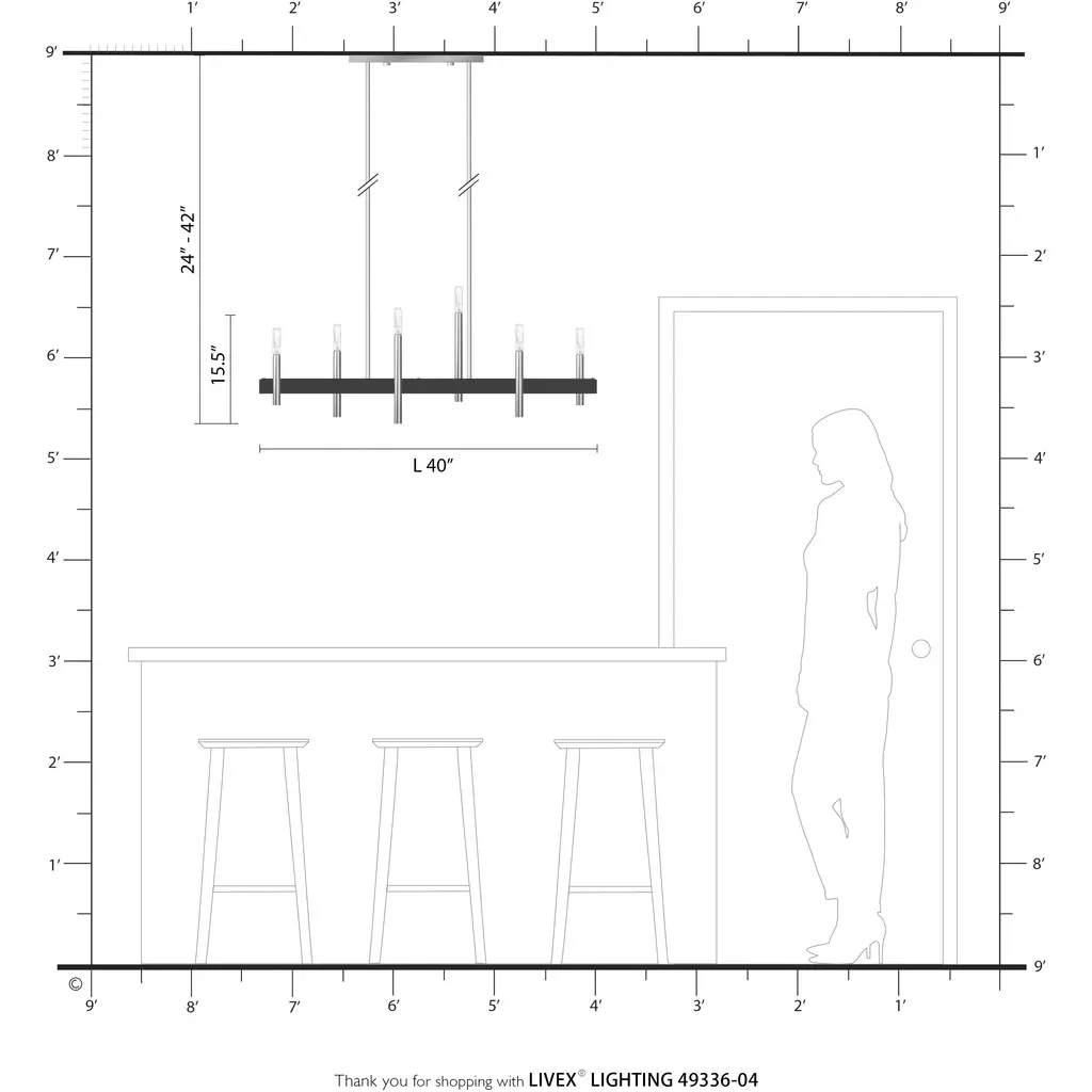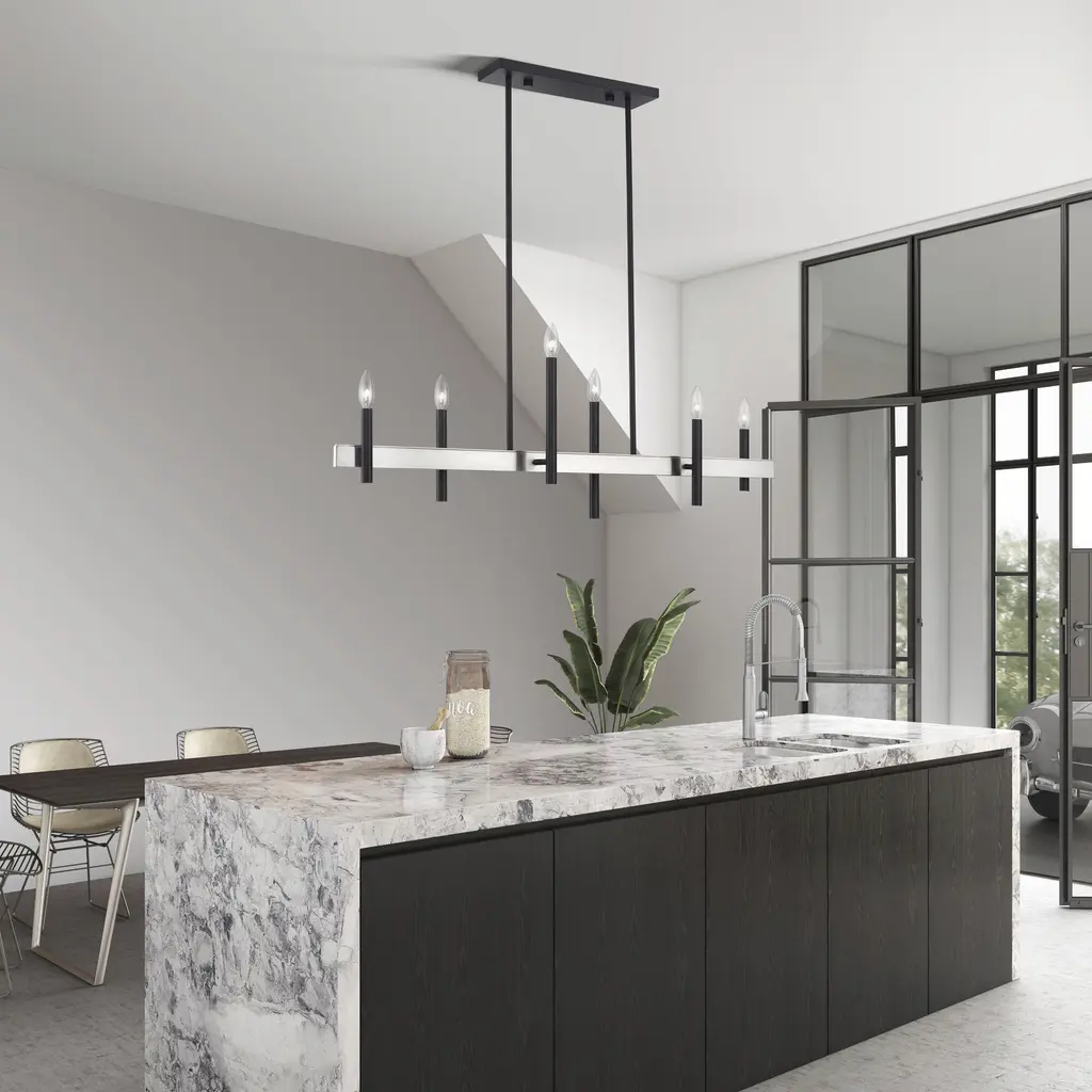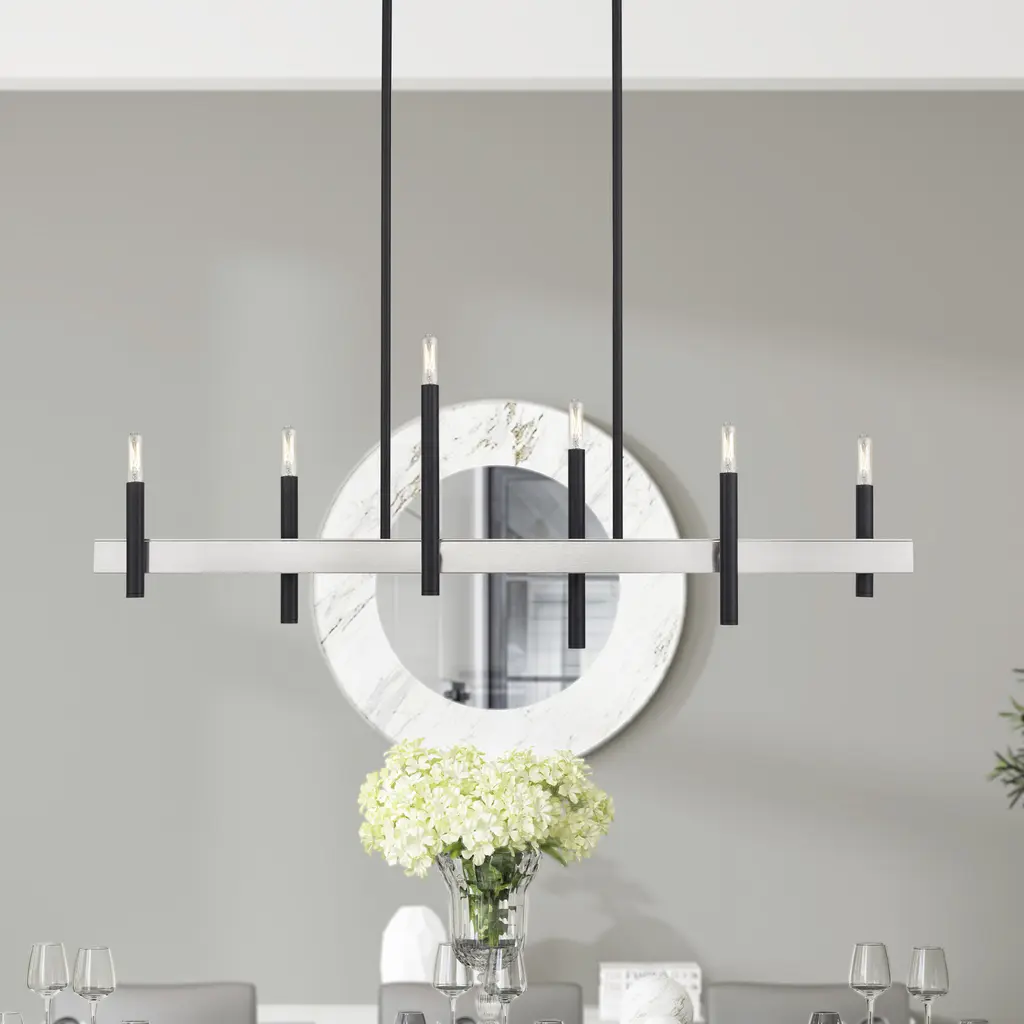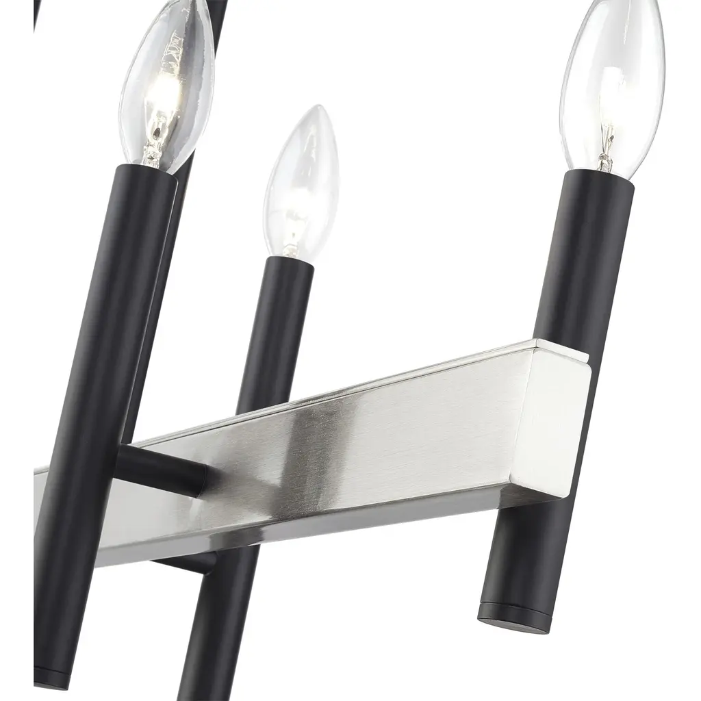 Denmark 6 Light 40 Inch Black With Brushed Nickel Accents Linear Chandelier Ceiling Light