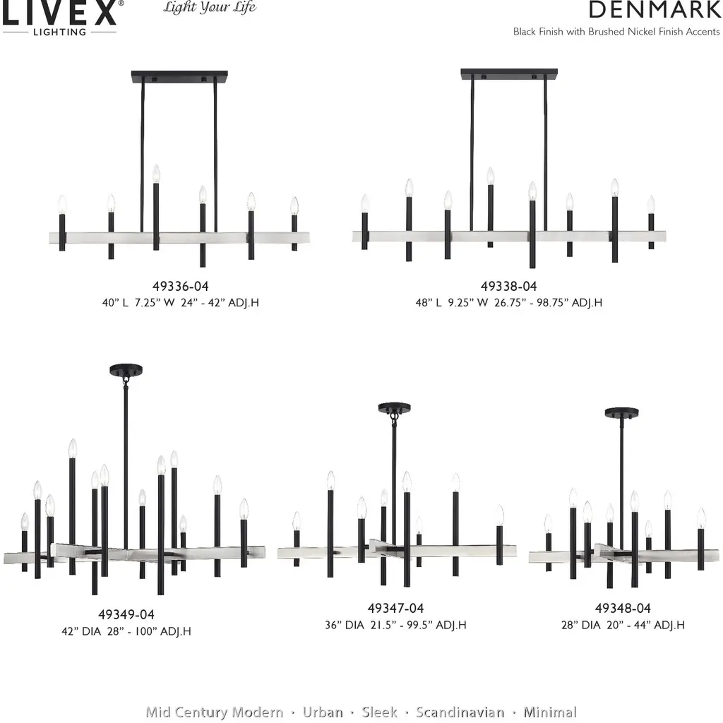 Clean lines and exposed bulb sockets make the Denmark collectionperfect for your mid-mod or transitional decor. The eclectic look is perfect for spaces wanting an urban, minimalistic or industrial touch. With superb craftsmanship and affordable price, th