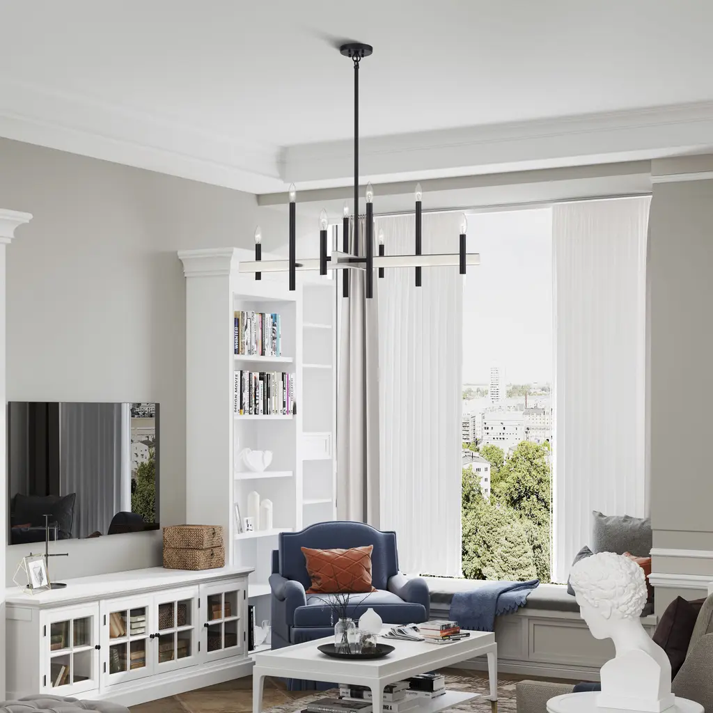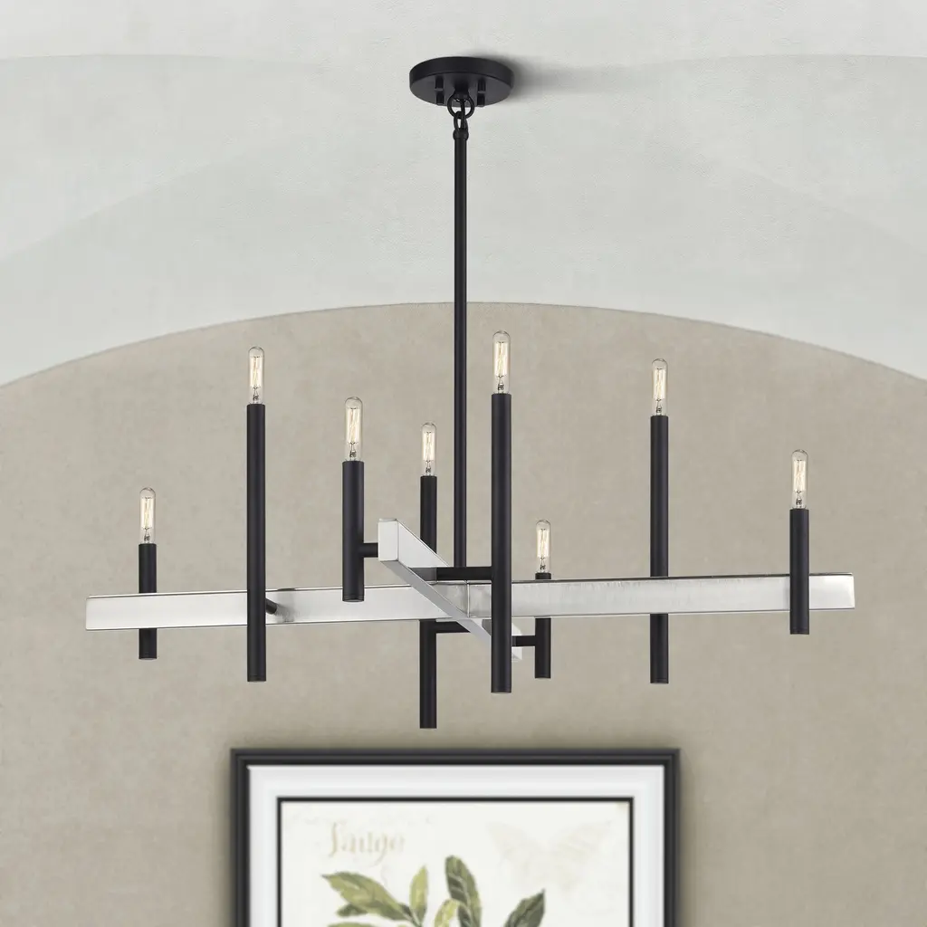 Denmark 8 Light 36 Inch Black With Brushed Nickel Accents Chandelier Ceiling Light