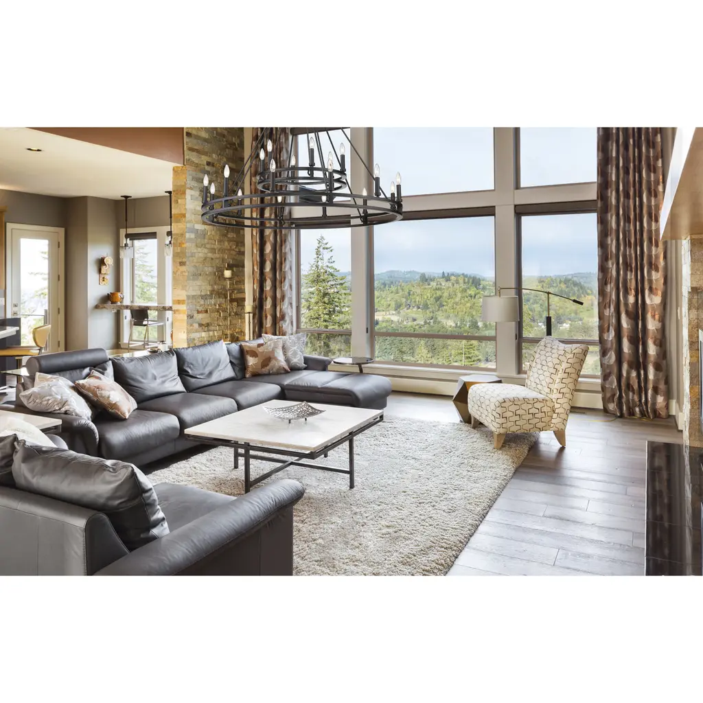 Palatial elegance offers a charming attitude that illuminates a classic custom space. This two-layer, eighteen-light chandelier adopts a dramatic aesthetic with geometric influence, becoming a focal point in a main living or dining area with its sleek Modern Matte Black finish metal ring frame.
