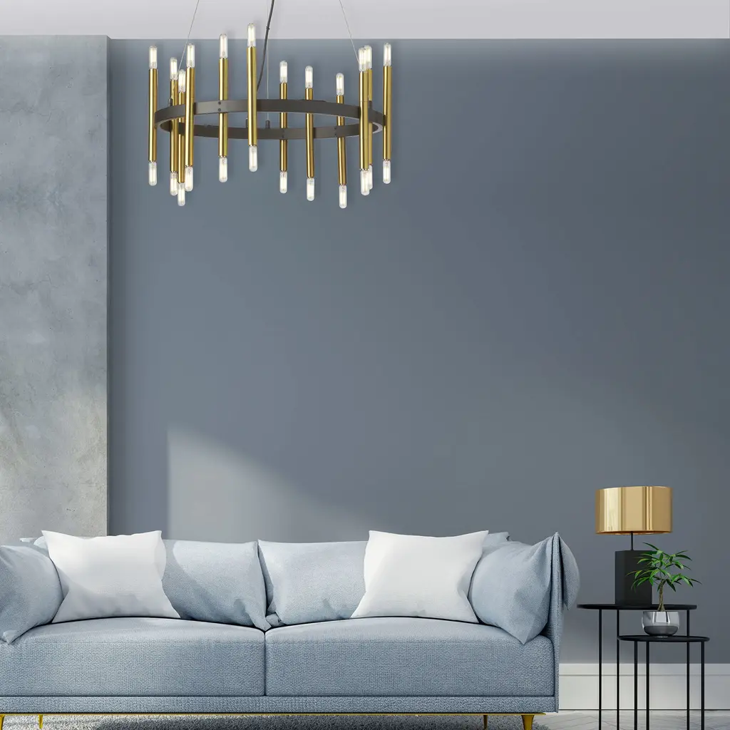 Derry 24 Light 24 Inch Matte Black With Aged Brass Chandelier Ceiling Light In Matte Black And Aged Brass
