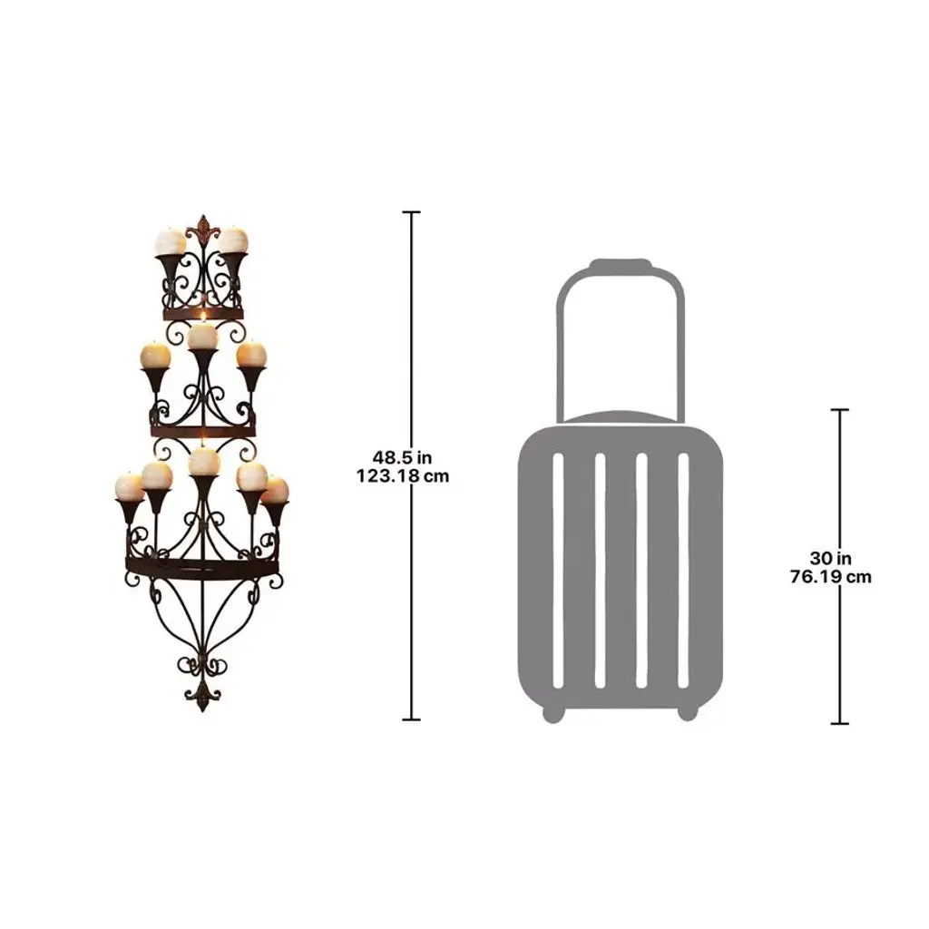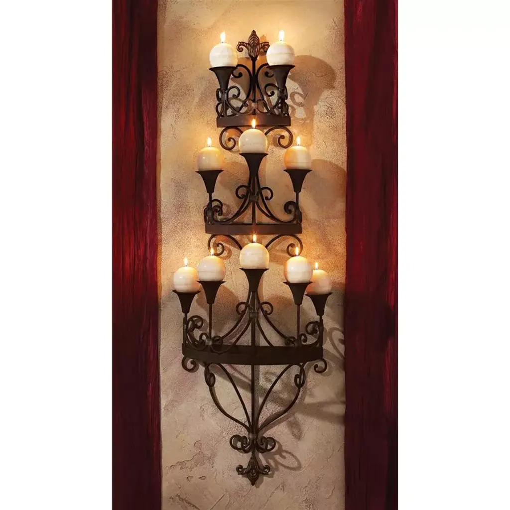 Everything is more beautiful in candlelight! Ready to light any evening, this classically elegant symphony of light and scrollwork is an absolutely unparalleled romantic candlelight accent. You'll welcome the instant ambiance of candlelight with our wall-mounted, hand-crafted, matte black metal work of decorative art. Whether in the boudoir, bath, dining or formal living room, the flicker of your favorite candles makes this Design Toscano exclusive statement piece complete. A great wedding, anniversary or housewarming gift! Do not leave lit candles unattended. Candles not included. 15½"Wx9"Dx48½"H. 6 lbs.