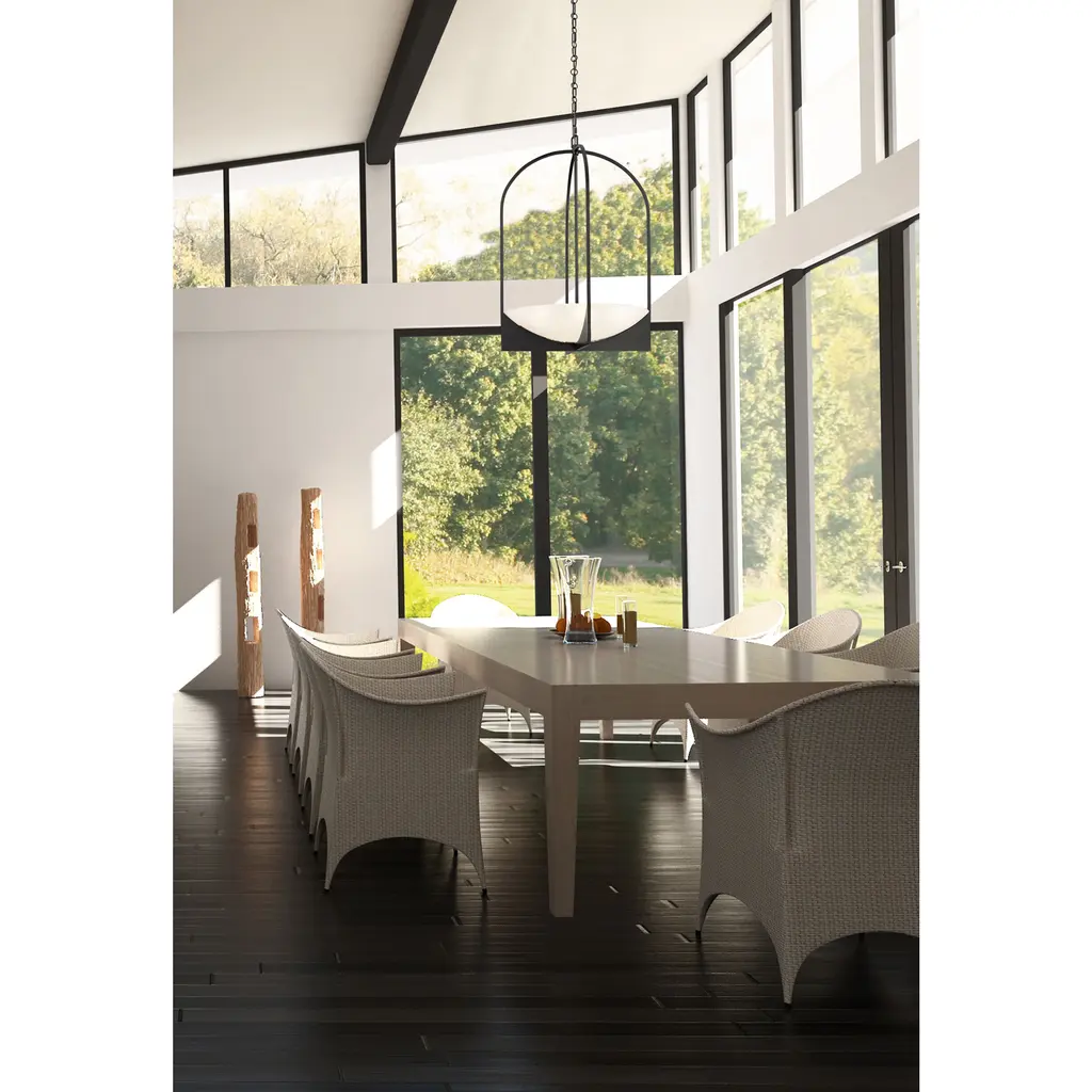 A bold matte black finish over steel construction adds a dramatic touch to this transitional six-light chandelier, a perfect example of low-key artistry with an open-concept design. An abrasive sand blast effect lends authenticity and character to a rounded frame with a delicate waterglass bowl acting as a diffuser and minimizing harsh glare. Create a dynamic impact to foyers, dining spaces, kitchens, and bedrooms with this sophisticated chandelier.