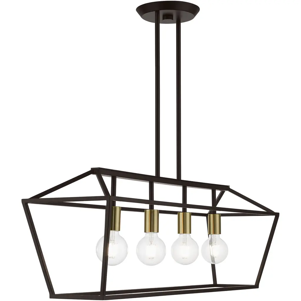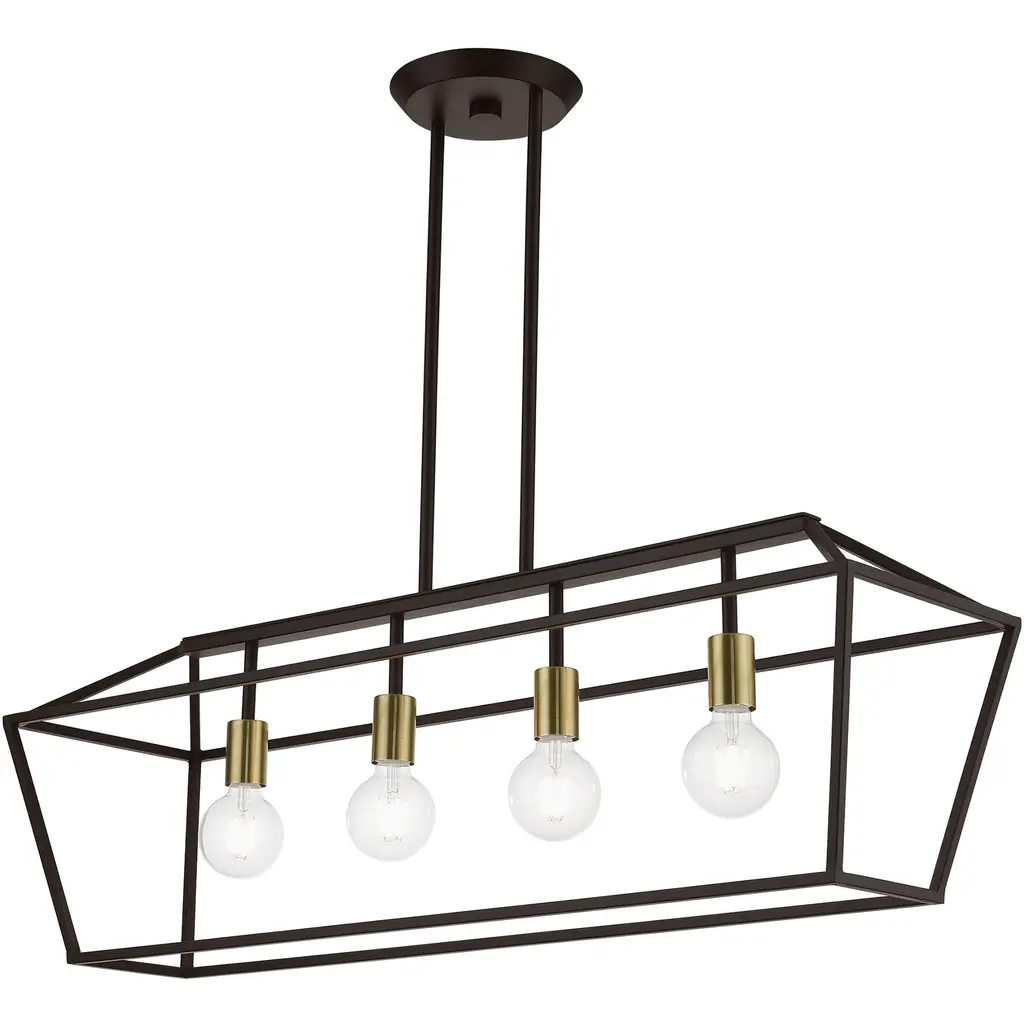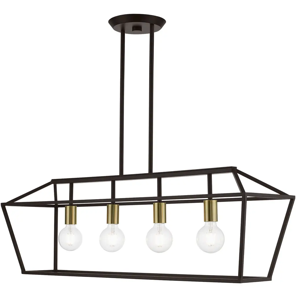 4 Light Bronze with Antique Brass Accents Linear Chandelier