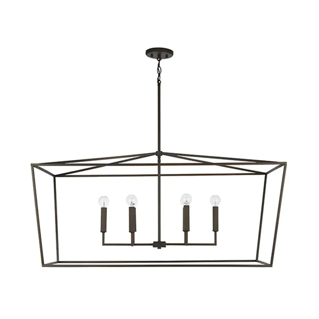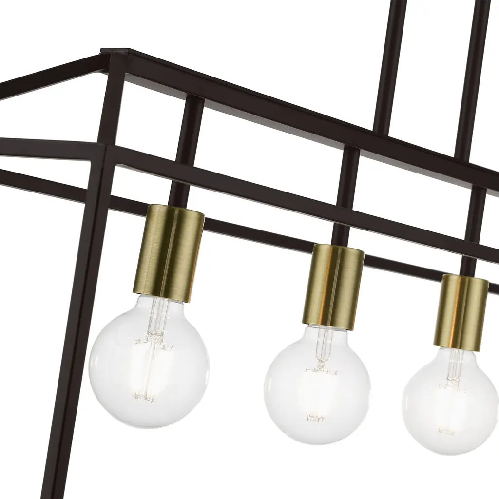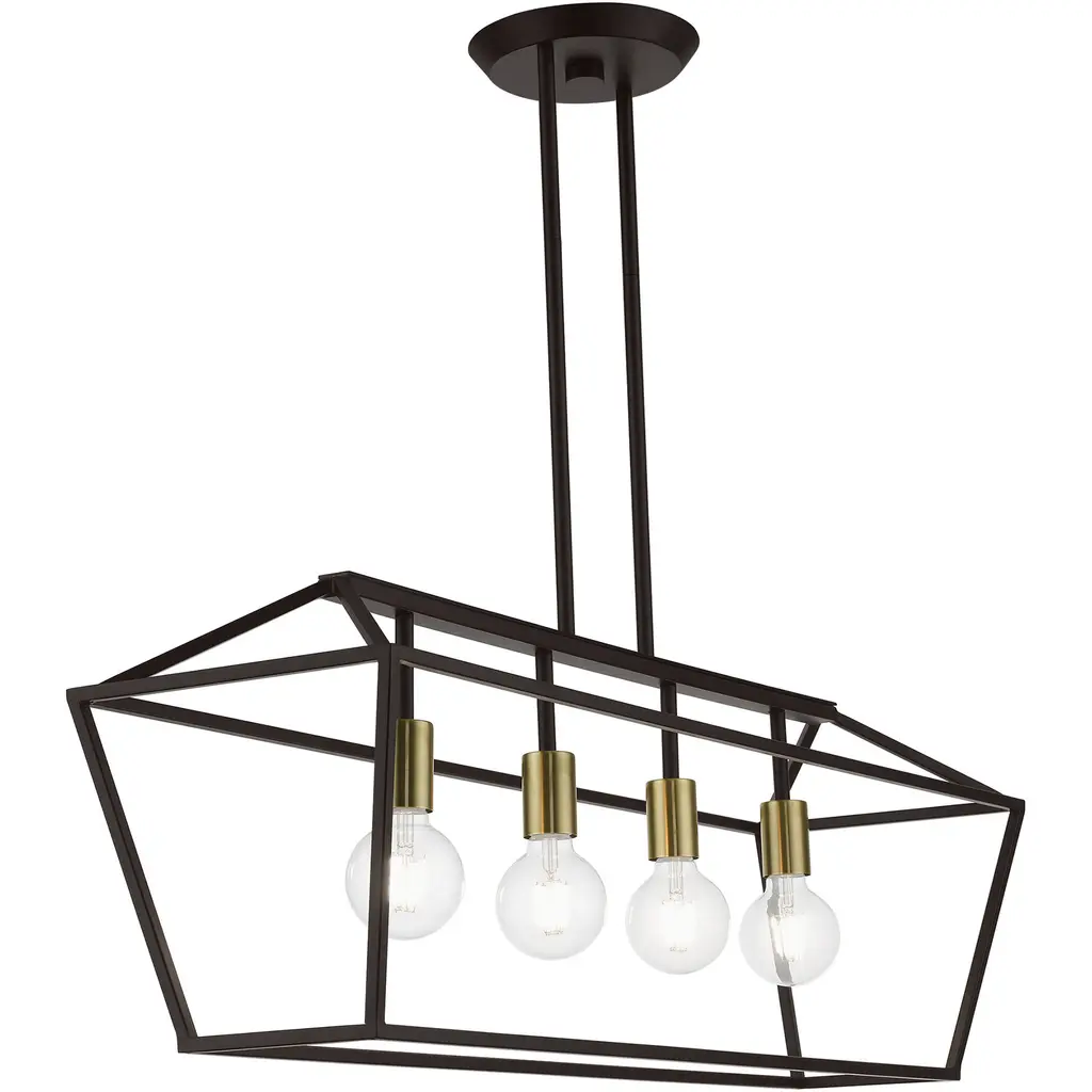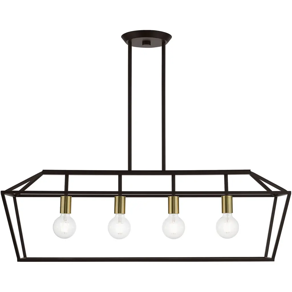 4 Light Bronze with Antique Brass Accents Linear Chandelier