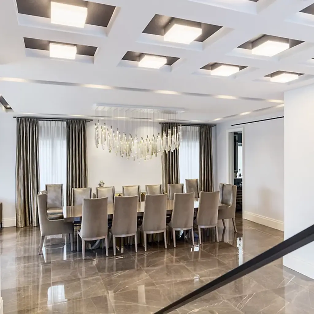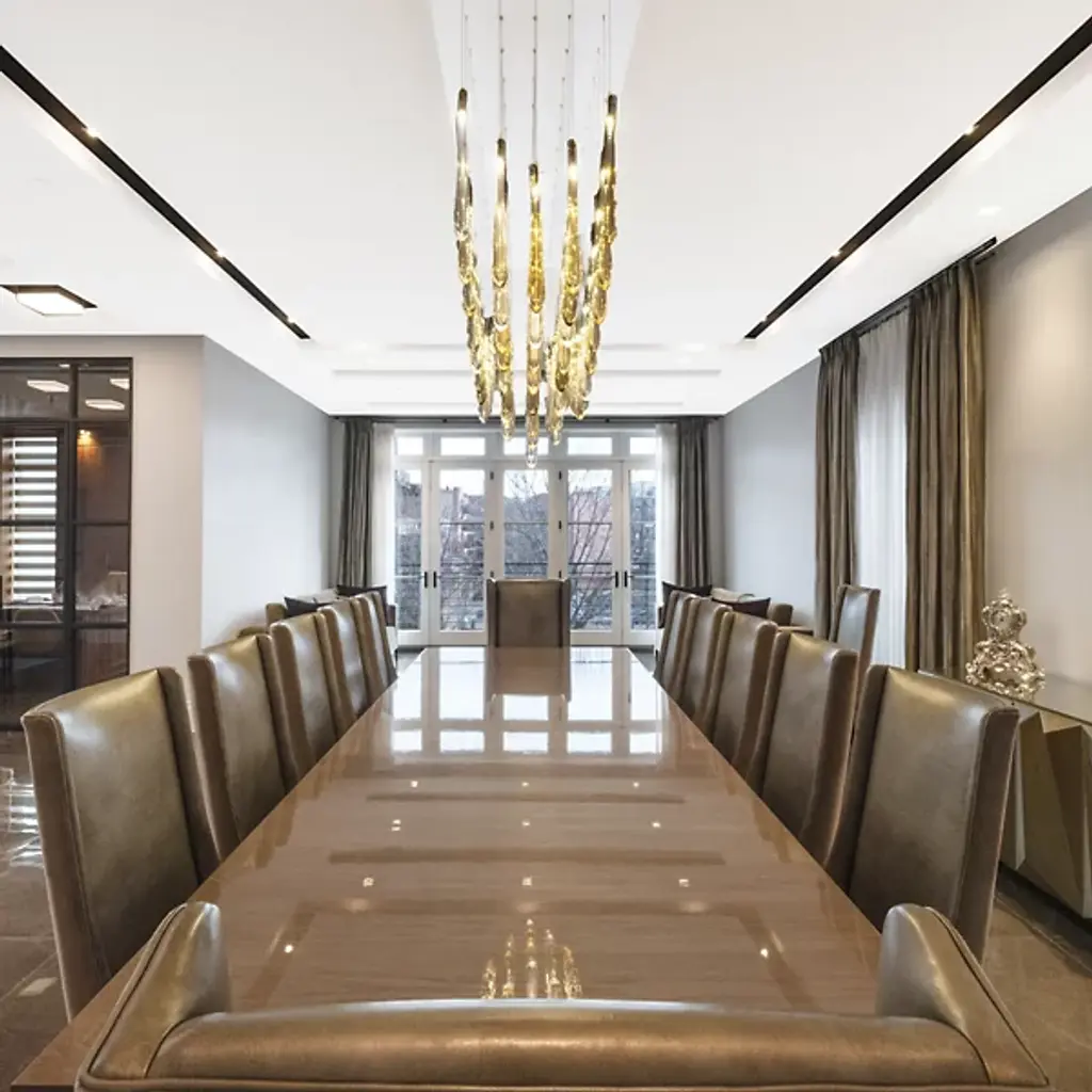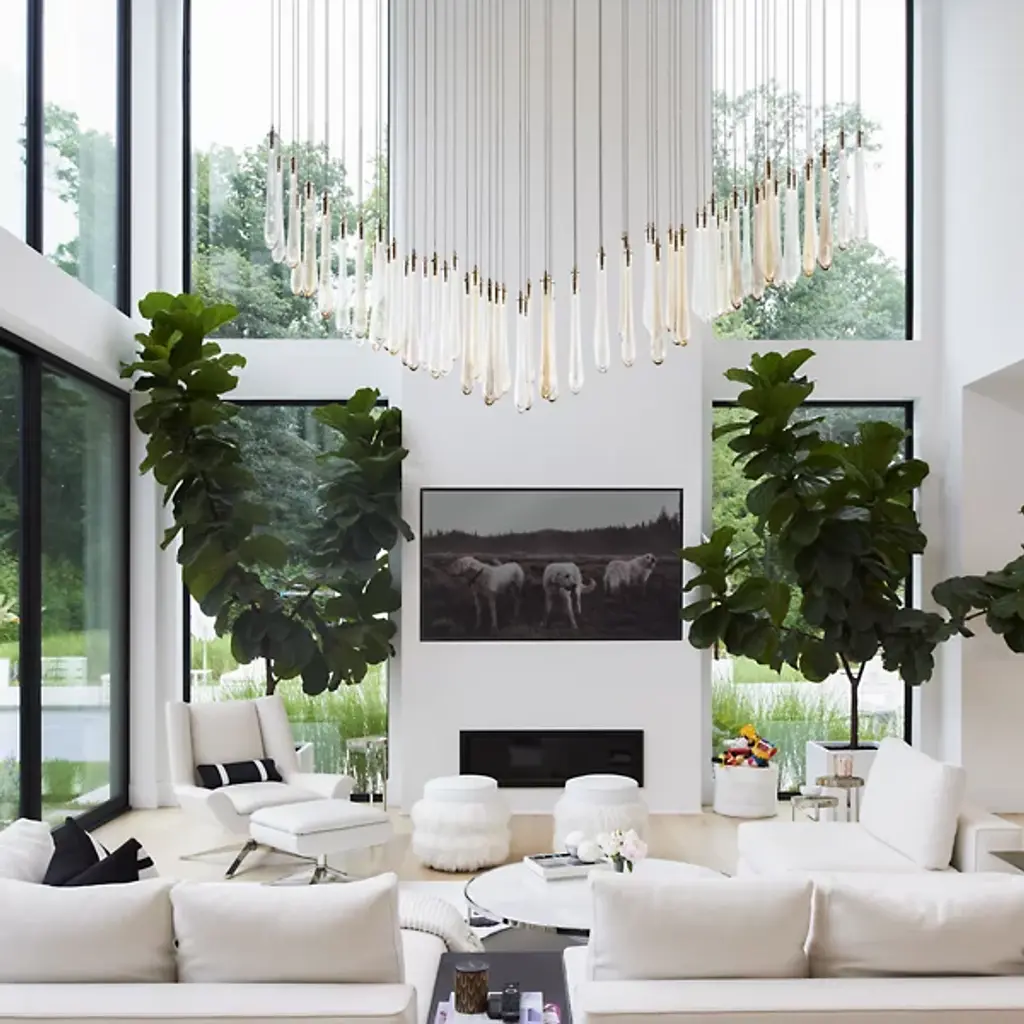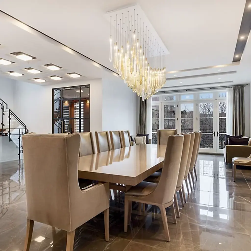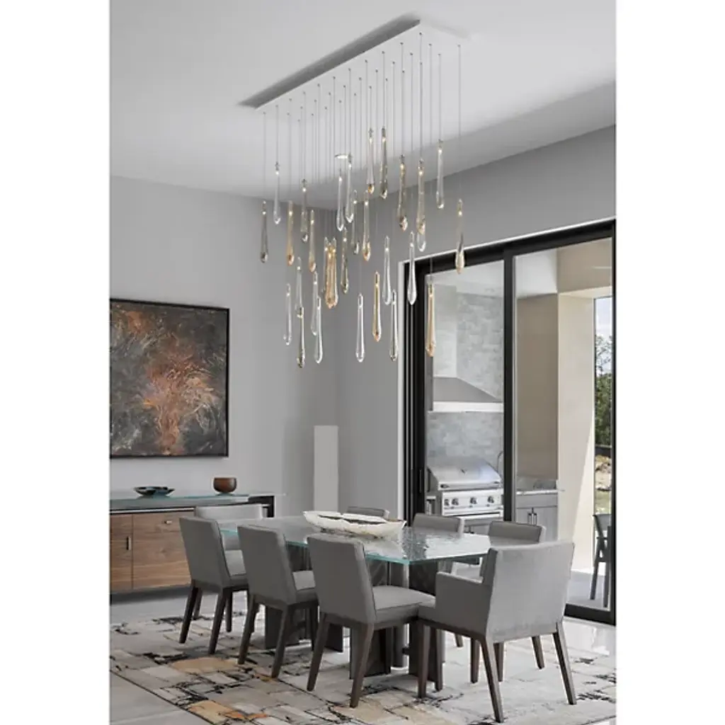 The Dew Rectangular Canopy Chandelier by Shakuff features elegance with its refined, organic design, making it a stunning addition to any room. Inspired by Joseph Sidof’s morning walks and the delicate allure of dew drops, this chandelier symbolizes freshness and new beginnings. Each pendant is crafted from cast glass using custom molds, resulting in exquisite light sculptures. The unique interplay of light between the pendants creates a mesmerizing and sophisticated ambiance.