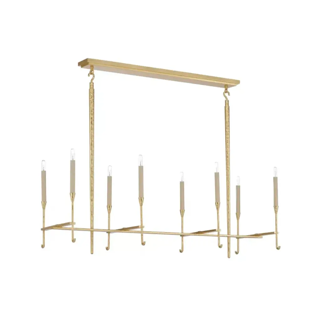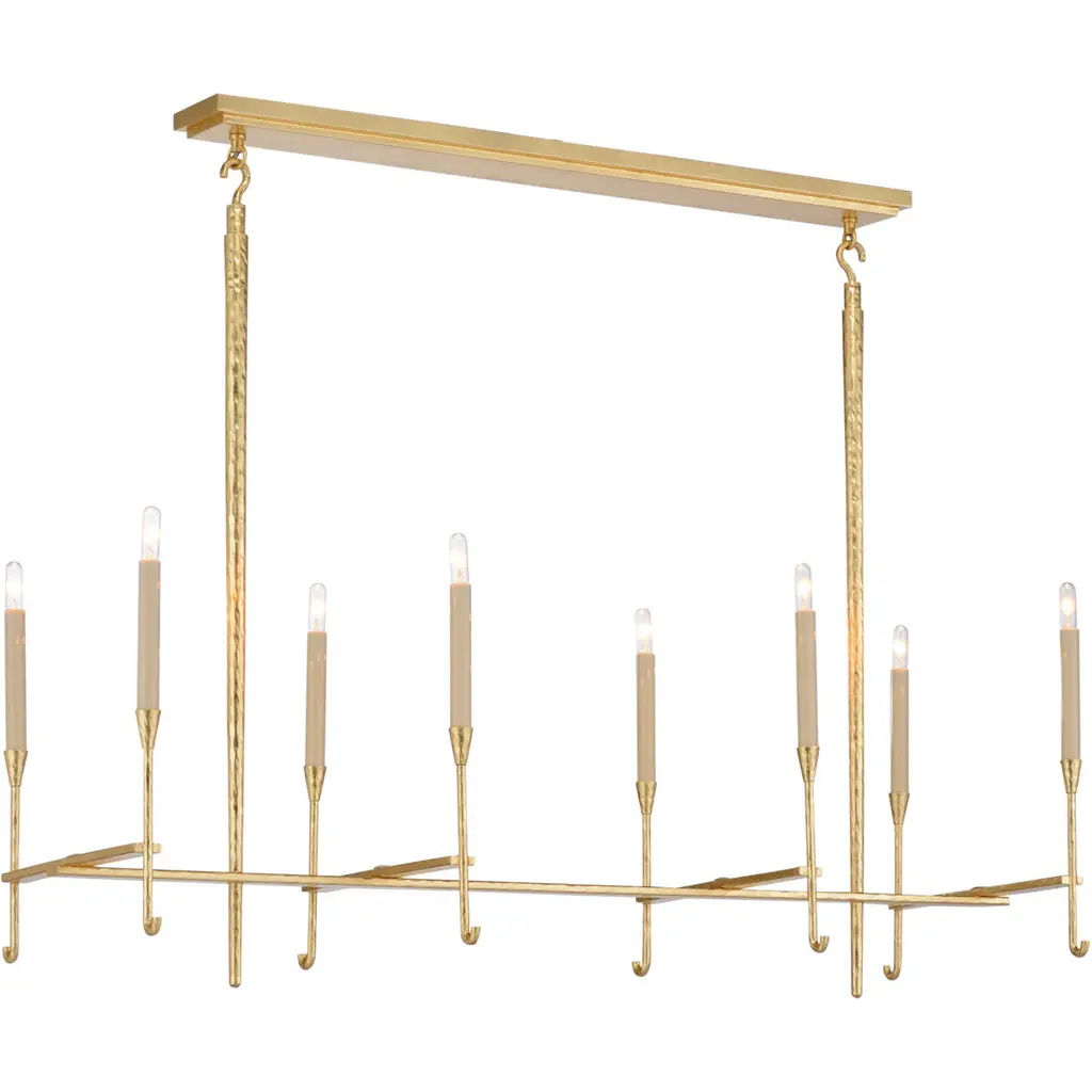 Hammered Gold Leaf Over Steel With Eight Electrified Candles.