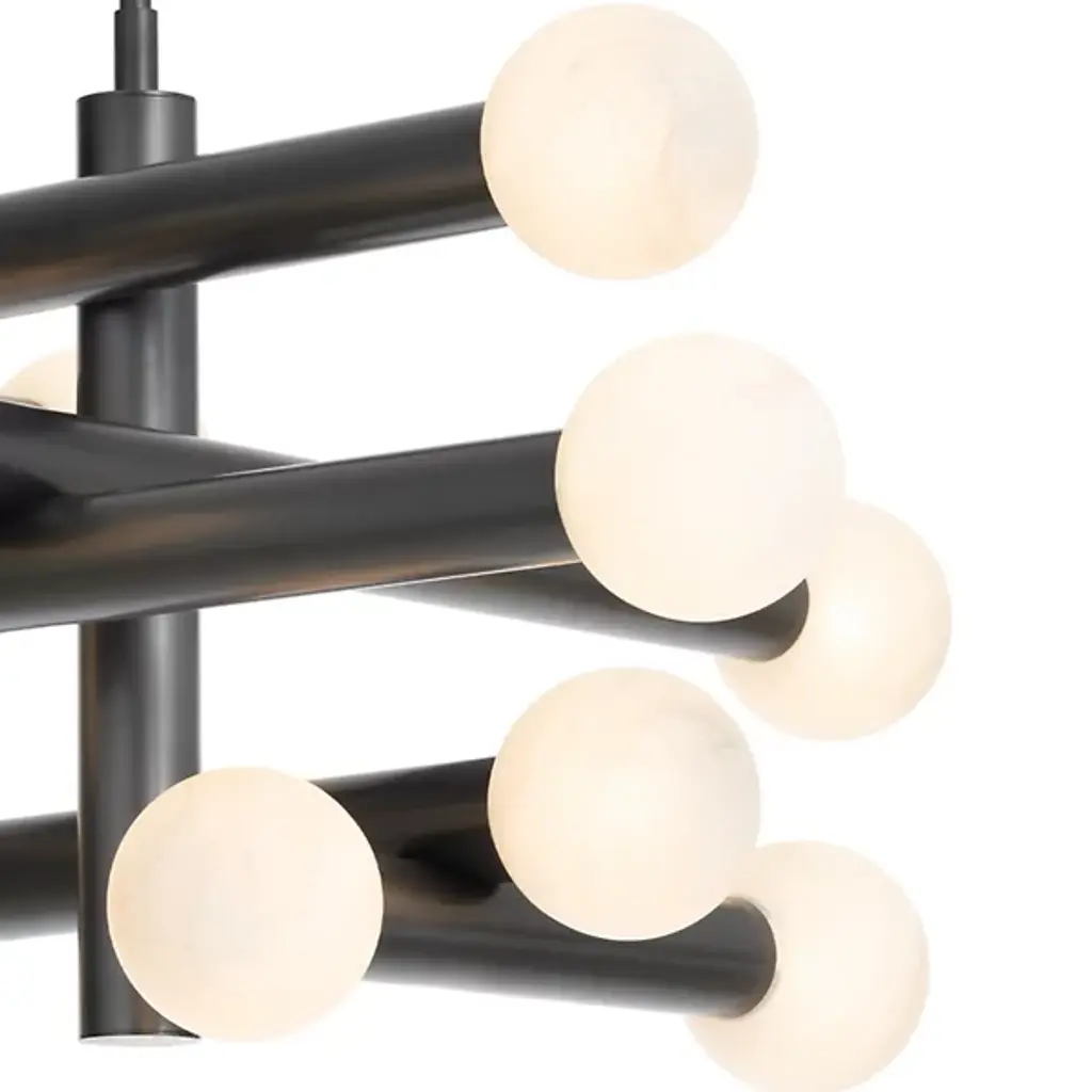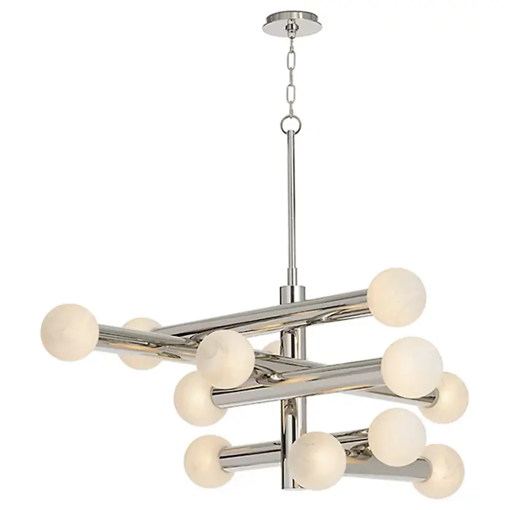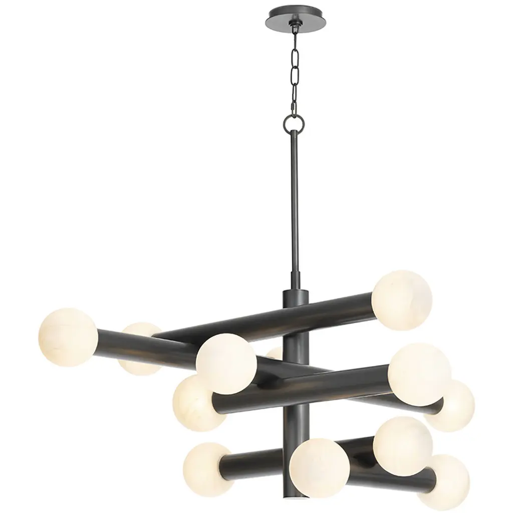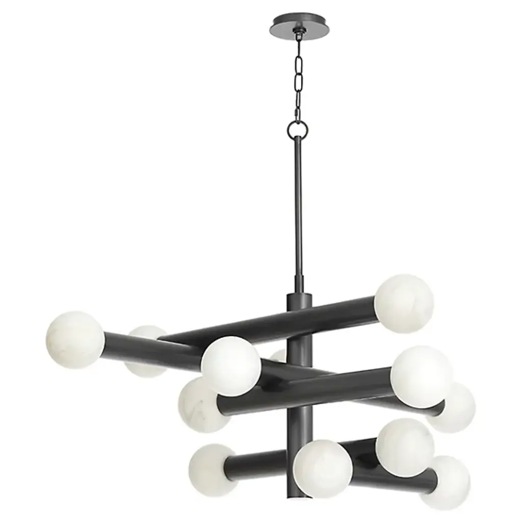 The Dion Chandelier from Regina Andrew features a sleek, modern design that captures the essence of mid-century modern aesthetics. This chandelier effortlessly combines contemporary sophistication with timeless elegance, featuring a stylish metal base and alabaster-like glass globes. Ideal for making a bold statement in larger spaces, the Dion Chandelier emits a warm, inviting glow, adding a touch of modern flair to dining rooms and living areas. Transform your space with the striking and elegant illumination of the Dion Chandelier.