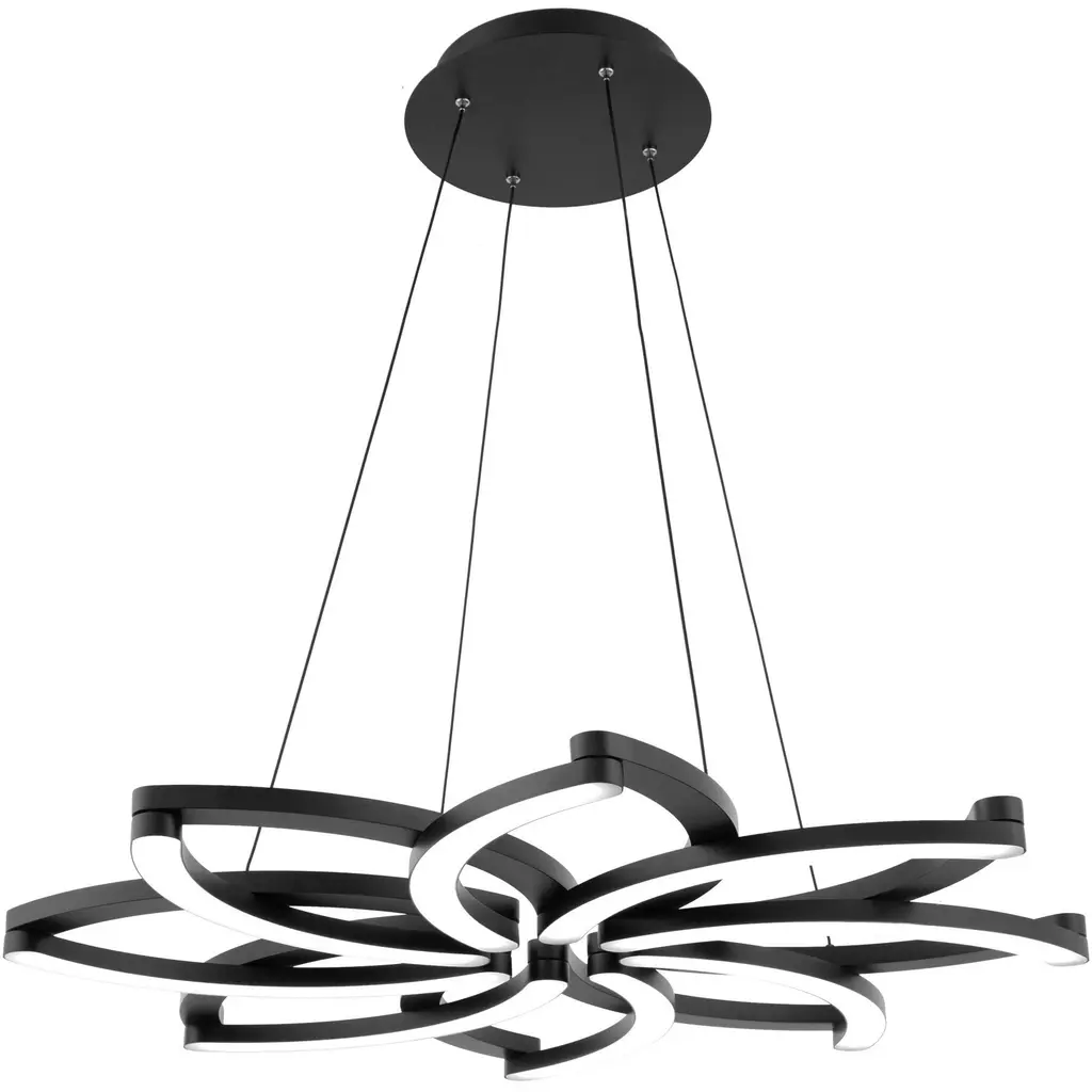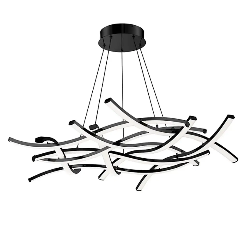 The Divergence LED Chandelier from dweLED lends an encompassing ambiance and decorative, sculptural personality to its surroundings. A circular, stepped canopy extends a series of slim cables out in all directions, supporting a grand assembly of LED lamping below. Each housing is constructed from interwoven bars that evoke strands of soft fabric. These bars flow into each other with generous curves. LED lamping lines the interior of the evocative forms with silicone shades accompanying them for gentled, glare-free light. A rich, textural silhouette, the chandelier’s light broadcasts a pleasing warmth over its surroundings.
