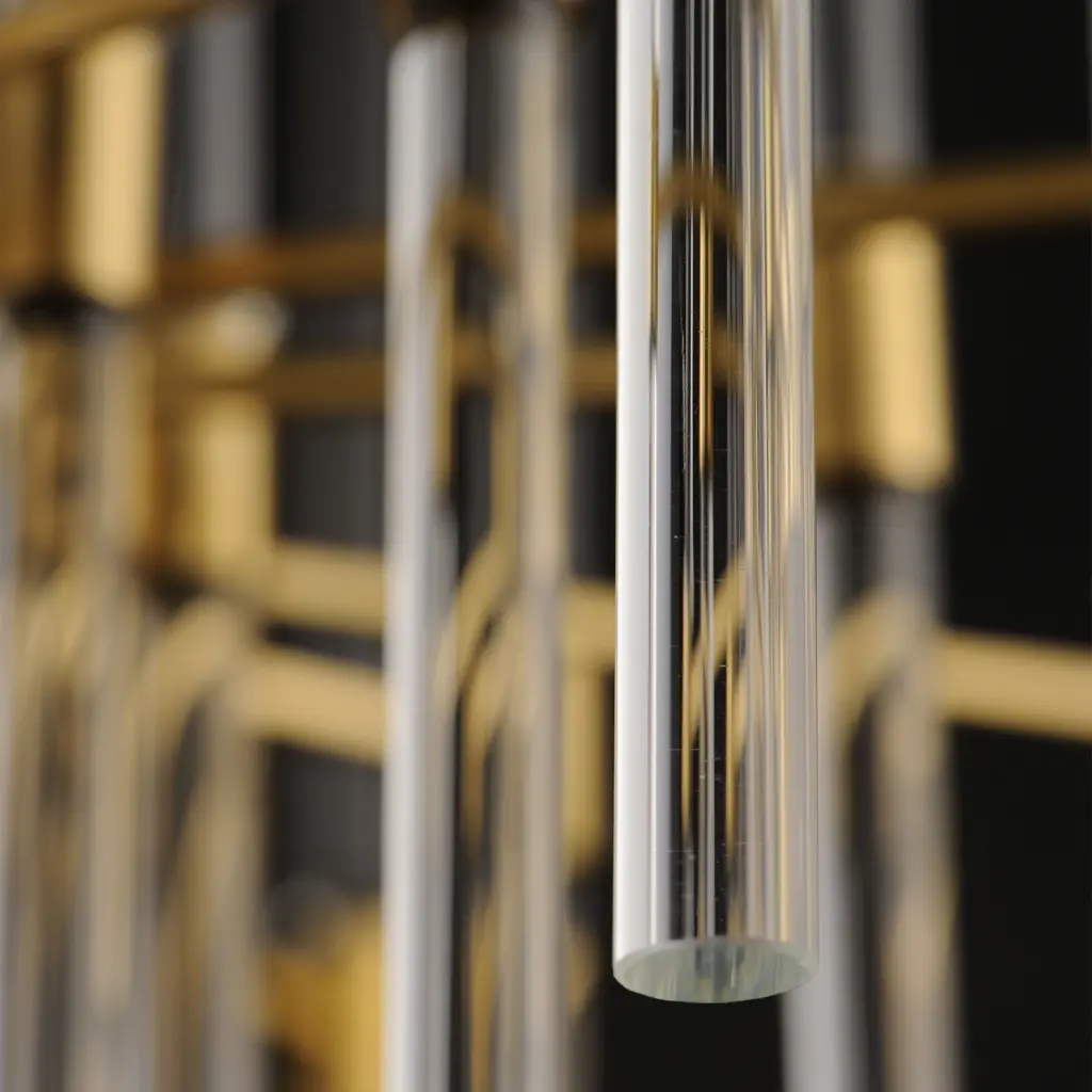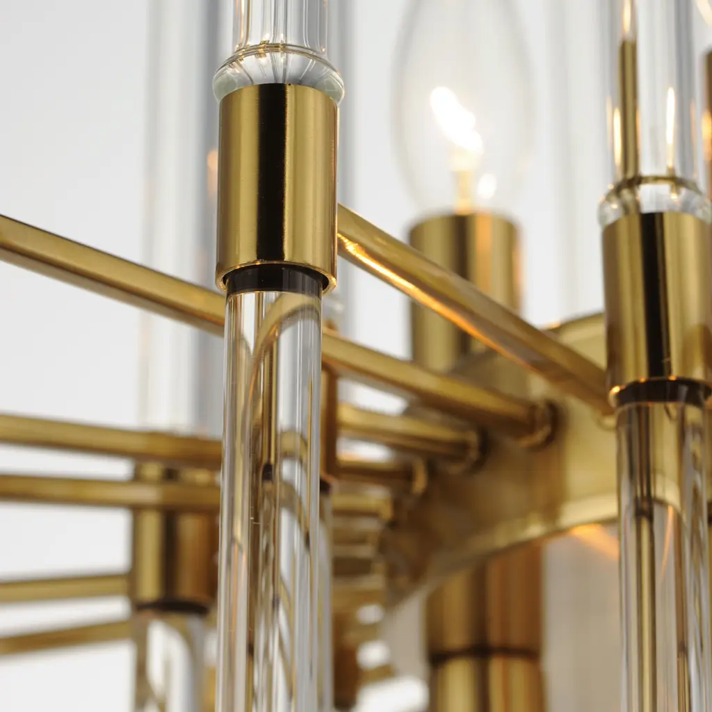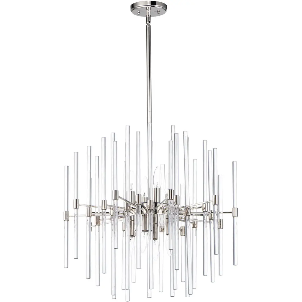 The composition of Clear glass rods are elegantly supported by thin radial arms of staggered lengths to create an iridescent motif that is truly Divine. Finished in Polished Nickel or Heritage Brass, the simplicity of this design delivers a crisp lighting fixture that works in a multitude of interior aesthetics from contemporary to traditional.