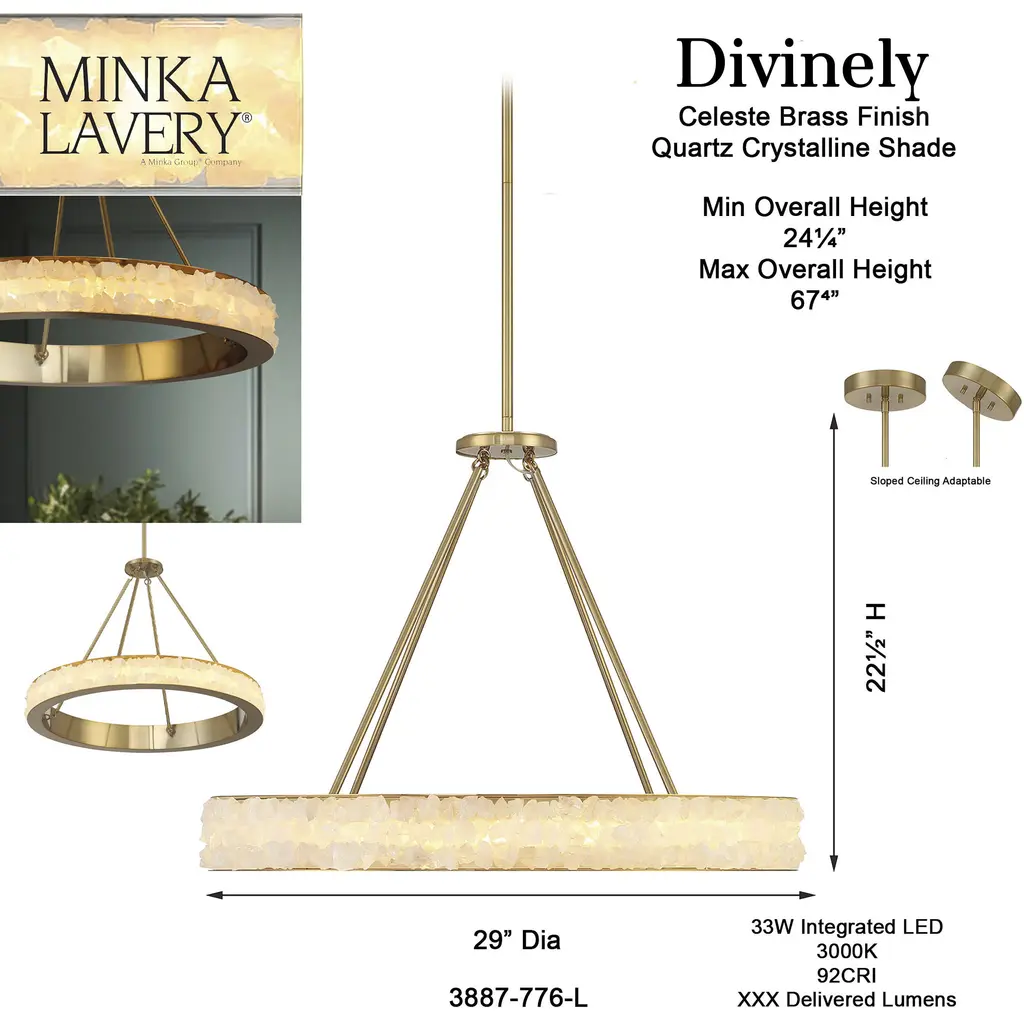 This 1 light Chandelier from the Divinely collection by Minka-Lavery will enhance your home with a perfect mix of form and function. The features include a Celeste Brass finish applied by experts. This item qualifies for free shipping!
