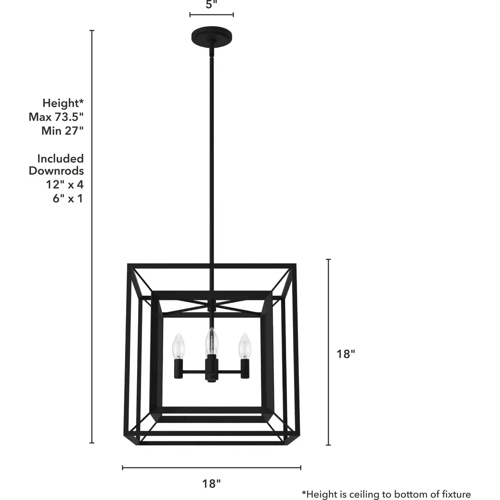 Brighten up your space with a warm glow with the Doherty 18-inch 4 light lantern pendant. A mixture of modern elegance and casual comfort, The Doherty combines bold design, clean lines, and warm illumination of candle-like bulbs that appear to float. This elegant pendant will match seamlessly with your décor.