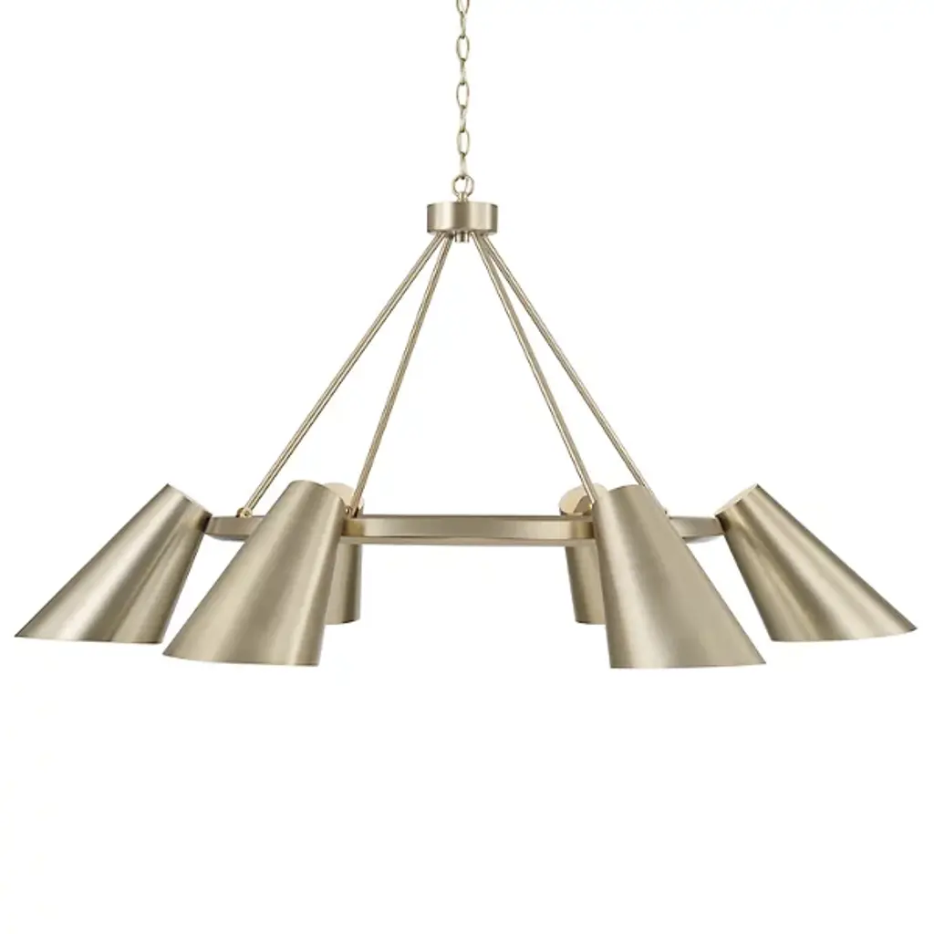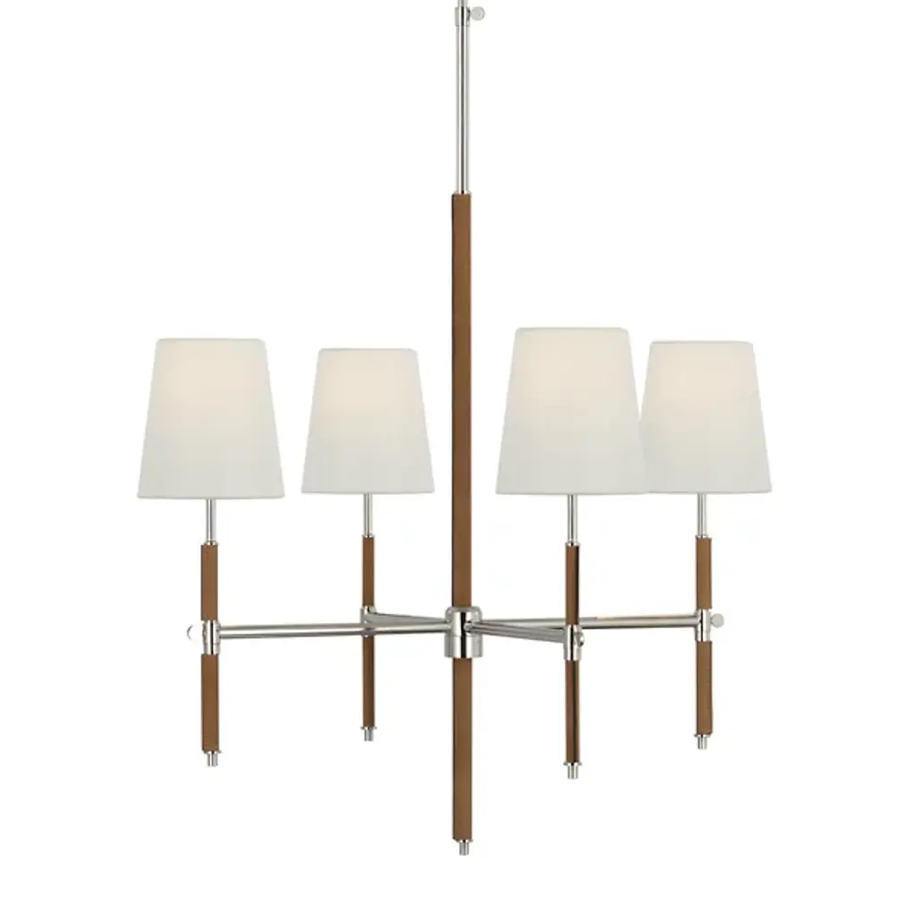 Mid-century lighting elements are a great way to blend vintage appeal into modern decorand the Garner chandelier provides the perfect touch. We love the mix of materials in this chandelier design with its top-grain leather shades, walnut finial, and sleek metal frame. Style this piece over your dining room or lounge to bring an artful edge to the room.
