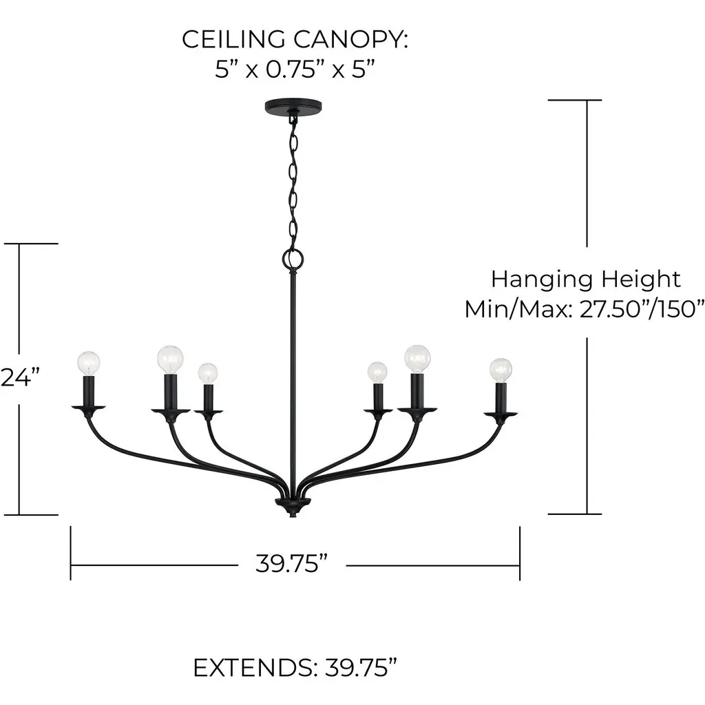 Dolan 6 Light 39.75 Inch Matte Black Chandelier Ceiling Light