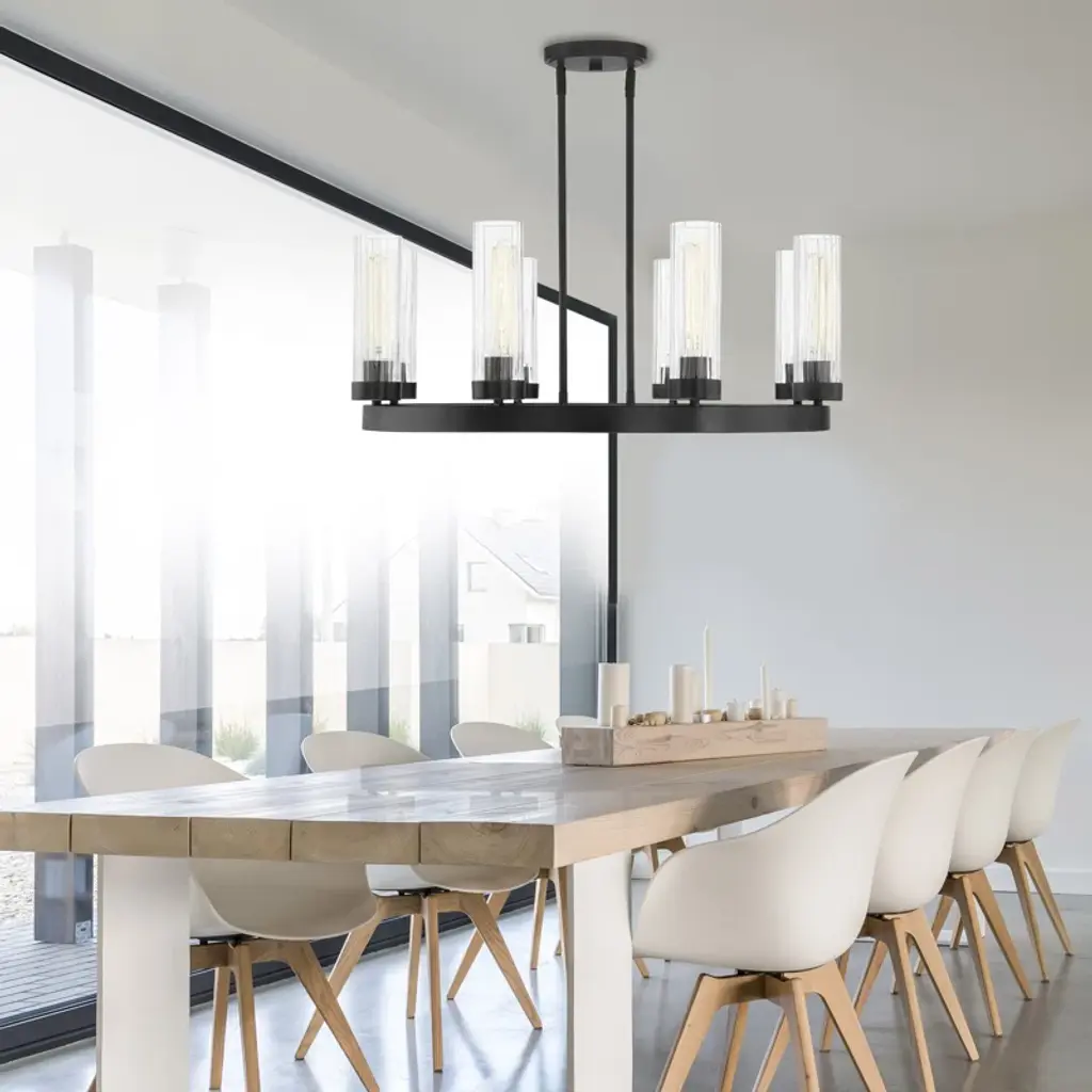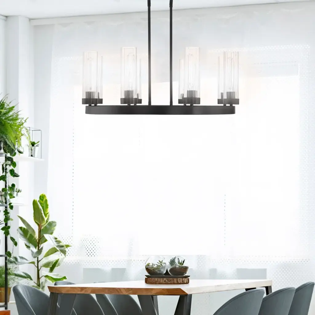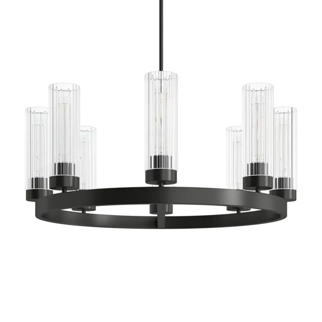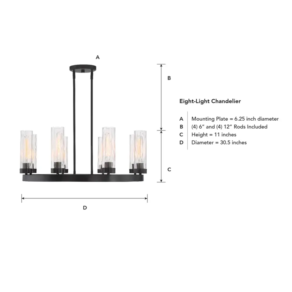 This 8-light chandelier combines the best aspects of old-world charm with sleek, modern minimalism. The frame is made from metal and hangs from a sloped ceiling-compatible canopy and two lengths of adjustable height downrod. Eight striated blown glass shades add an artisanal touch that works in contrast to the crisp feel of the metal's iron graphite finish. Best of all, this fixture is compatible with dimmer switches, so it's great for adding a warm glow to your entryway or setting the mood for a fancy dinner. It accommodates eight 60W bulbs (sold separately).