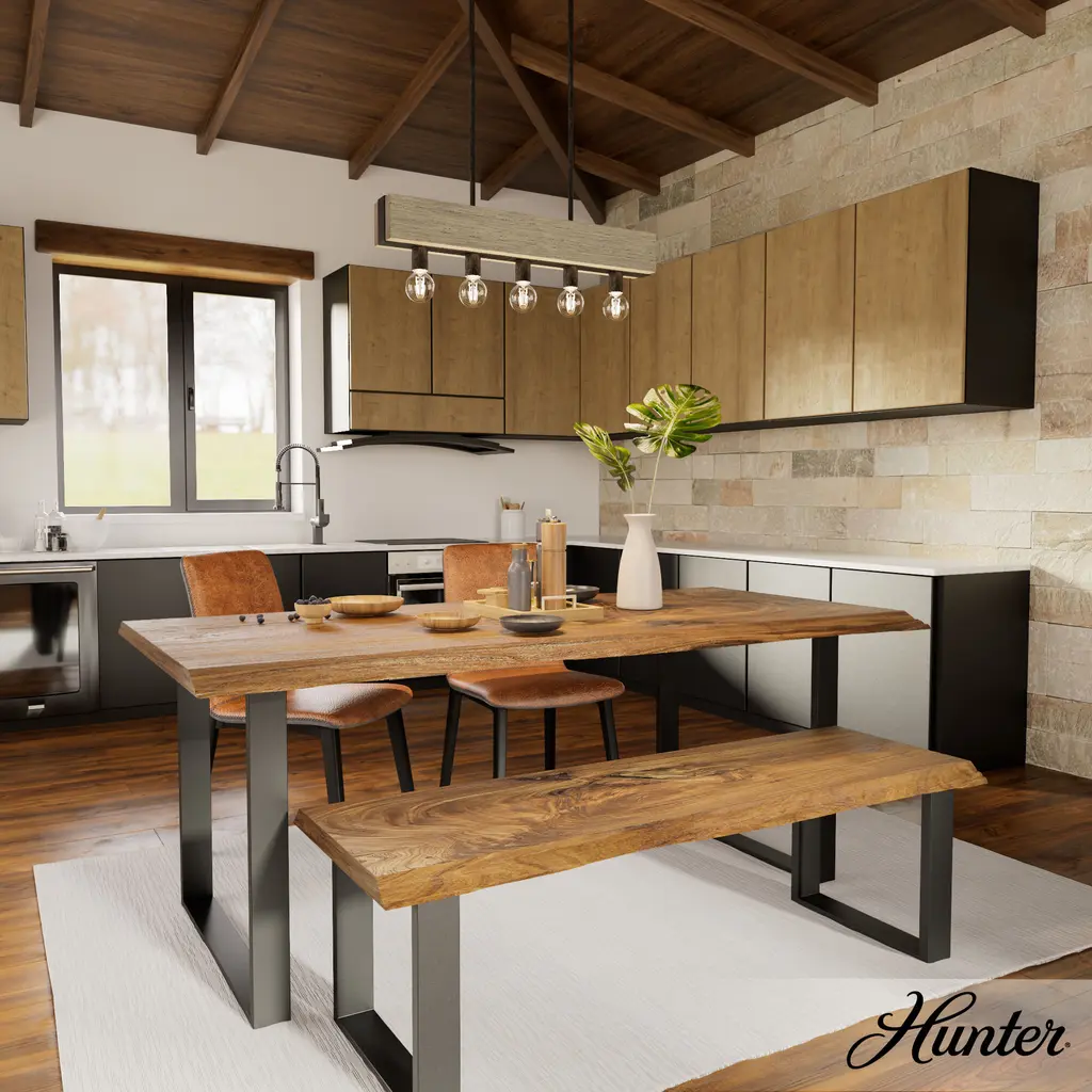 Relax under the light of the Donelson Chandelier. The wood-inspired details and metal finish evoke a rustic feel, while the linear chandelier's clean design gives this fixture a modern edge. This light will bring a welcome glow to your table and serve as a testament to your impeccable sense of style. Add the Donelson sconces to complete your space, or browse our other collections to mix and match.