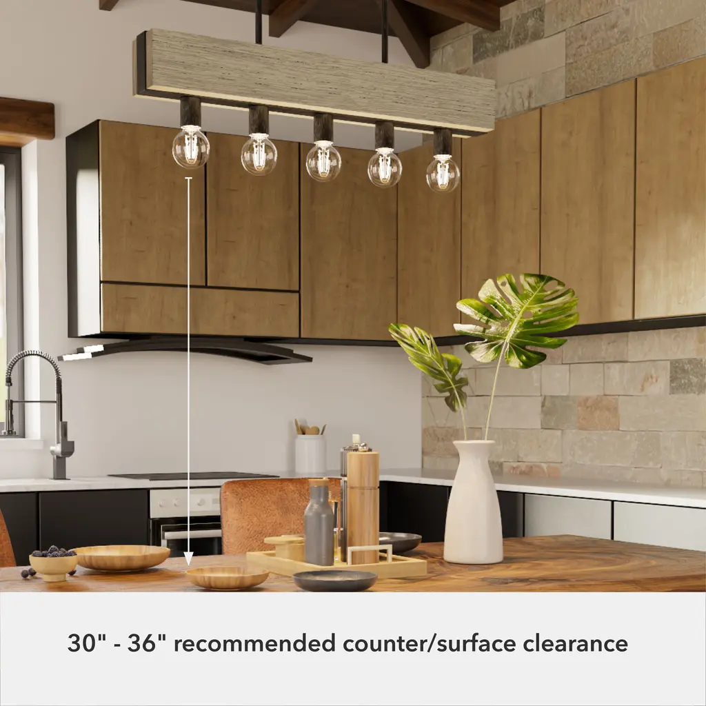 Donelson 5 Light 30 Inch Rustic Iron And Barnwood Linear Chandelier Ceiling Light, Small