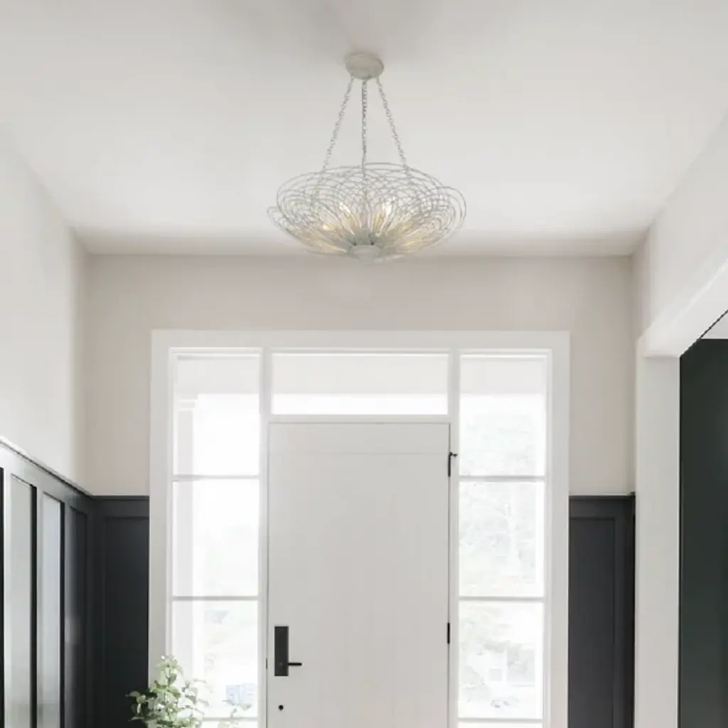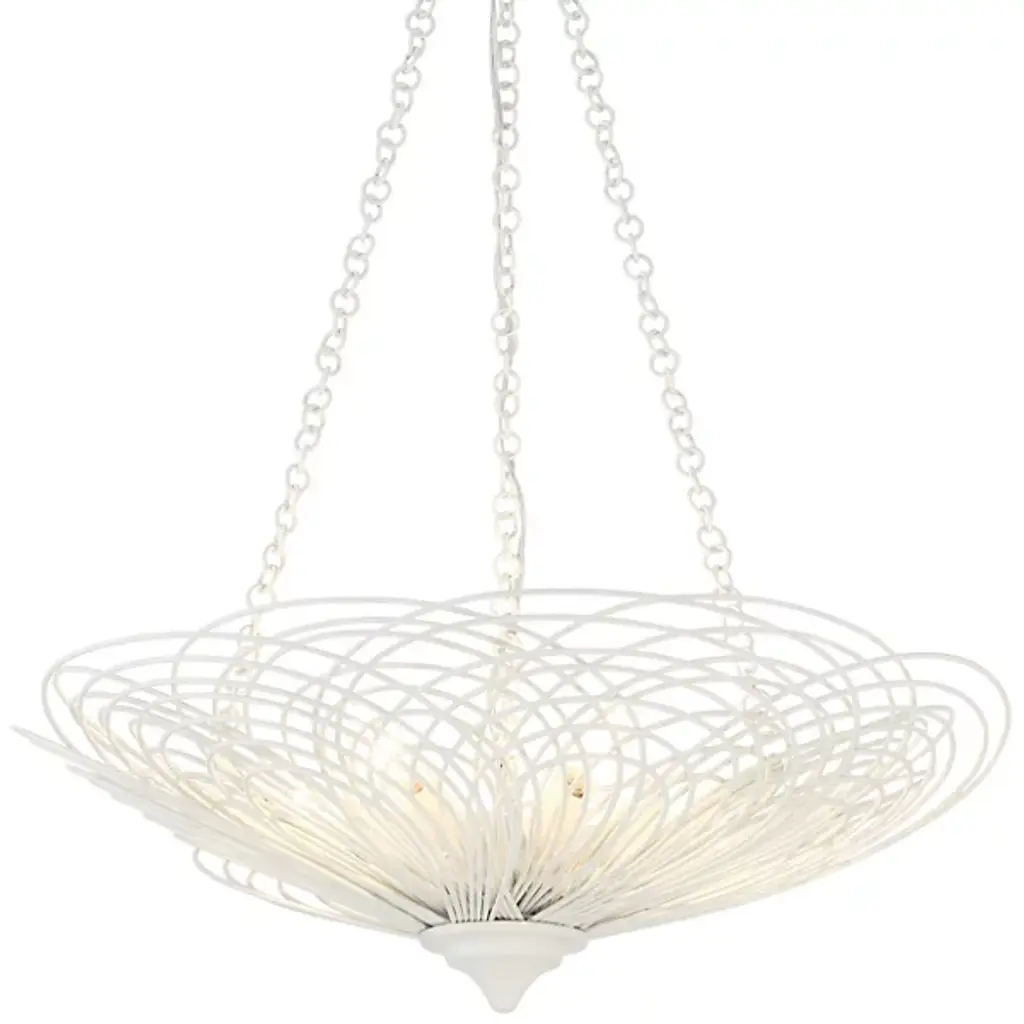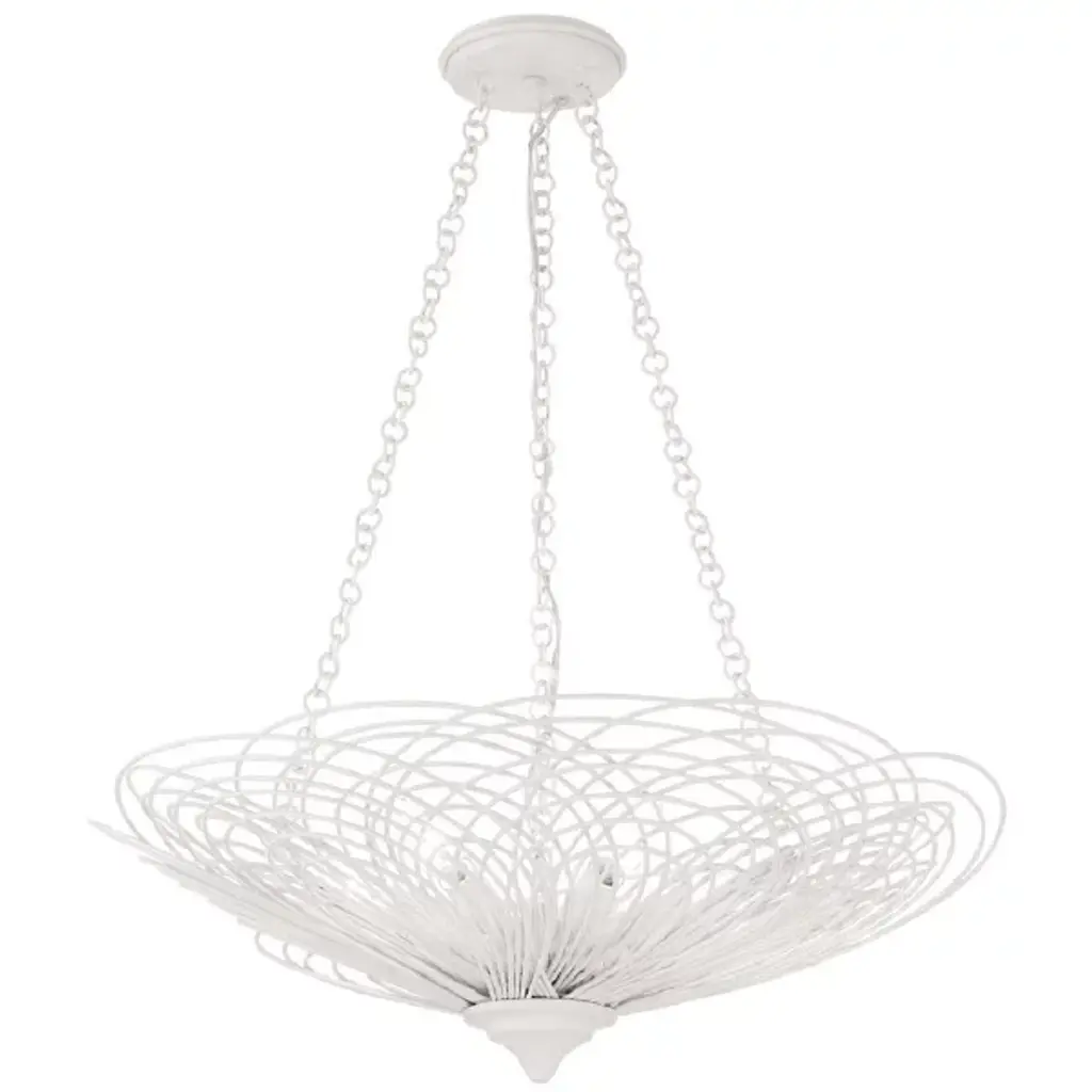 The Doral Chandelier from Crystorama is a breathtaking piece inspired by the delicate beauty of flower petals. Crafted meticulously, this chandelier features gracefully swirling metal rings that create a symmetrical design reminiscent of a blossoming flower when viewed from below. Made from high-quality steel, Doral boasts durability and refinement. Its organic form effortlessly harmonizes with transitional interiors, infusing a sense of nature-inspired allure. Adjust its brightness level using a separately sold ELV dimmer.