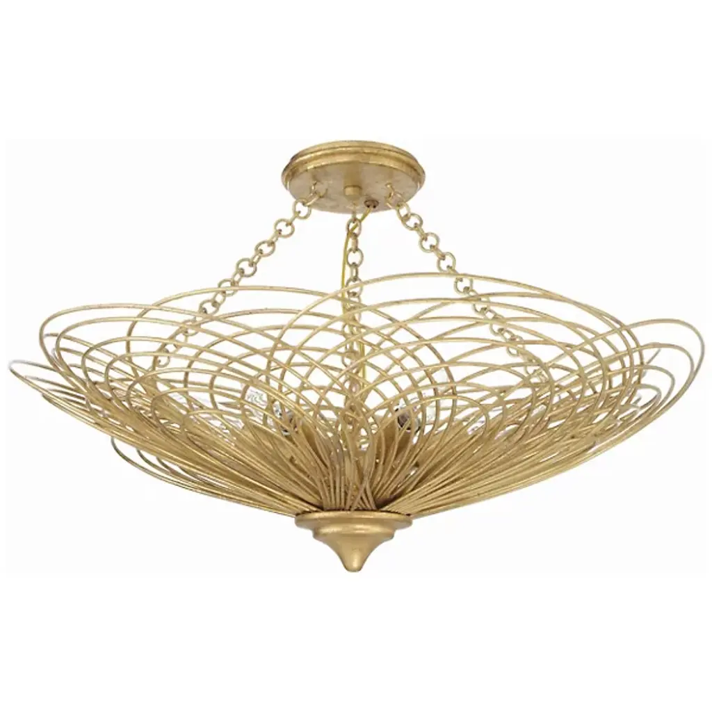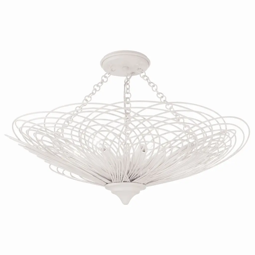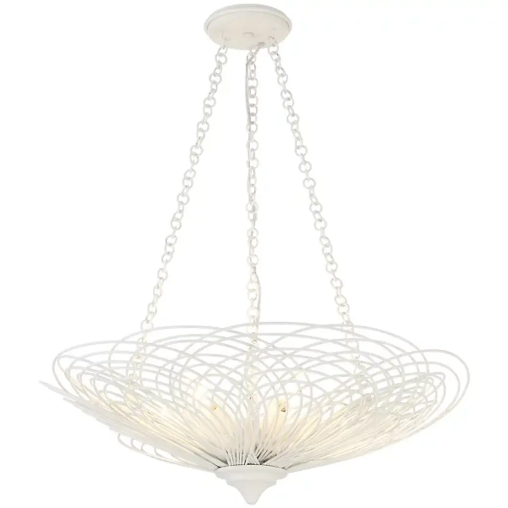 The Doral Chandelier from Crystorama is a breathtaking piece inspired by the delicate beauty of flower petals. Crafted meticulously, this chandelier features gracefully swirling metal rings that create a symmetrical design reminiscent of a blossoming flower when viewed from below. Made from high-quality steel, Doral boasts durability and refinement. Its organic form effortlessly harmonizes with transitional interiors, infusing a sense of nature-inspired allure. Adjust its brightness level using a separately sold ELV dimmer.