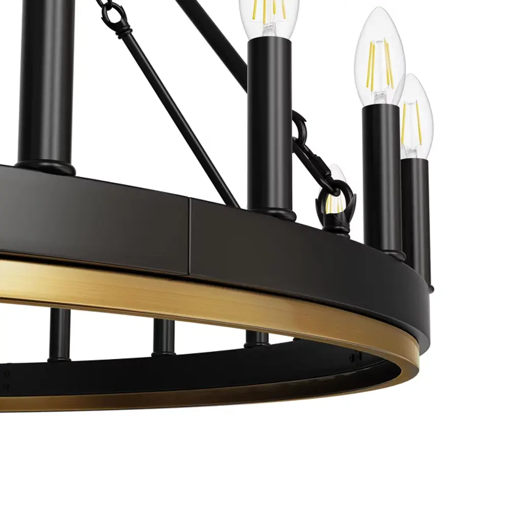 Doresshop 24-light Black And Gold Wagon Wheel Chandelier, Single Tier, E12 Sockets, Non-integrated Bulbs, Rustic Farmhouse Style