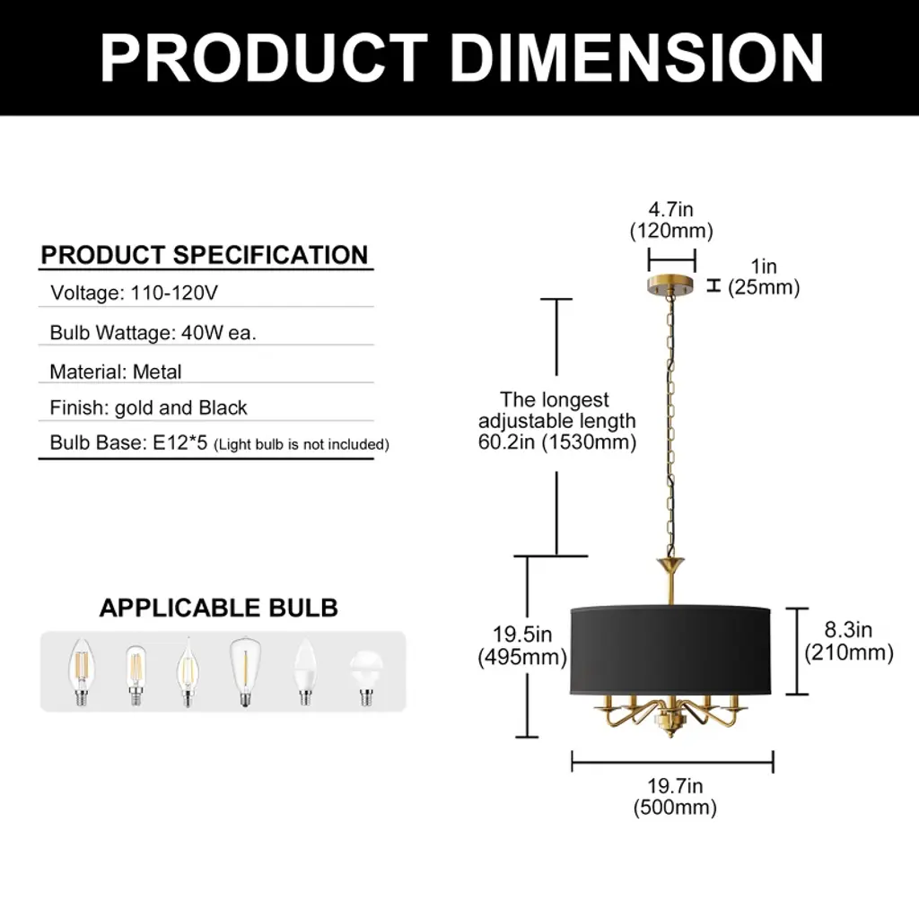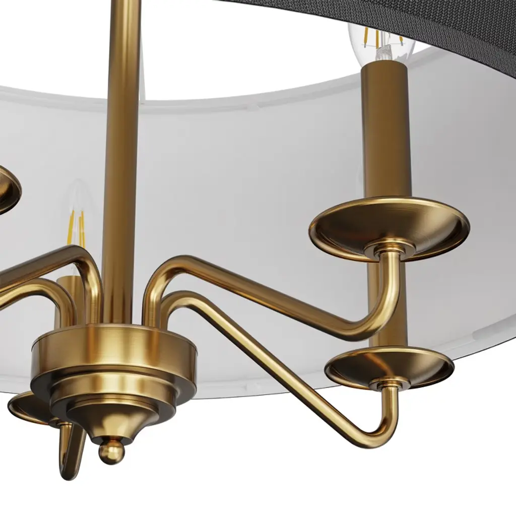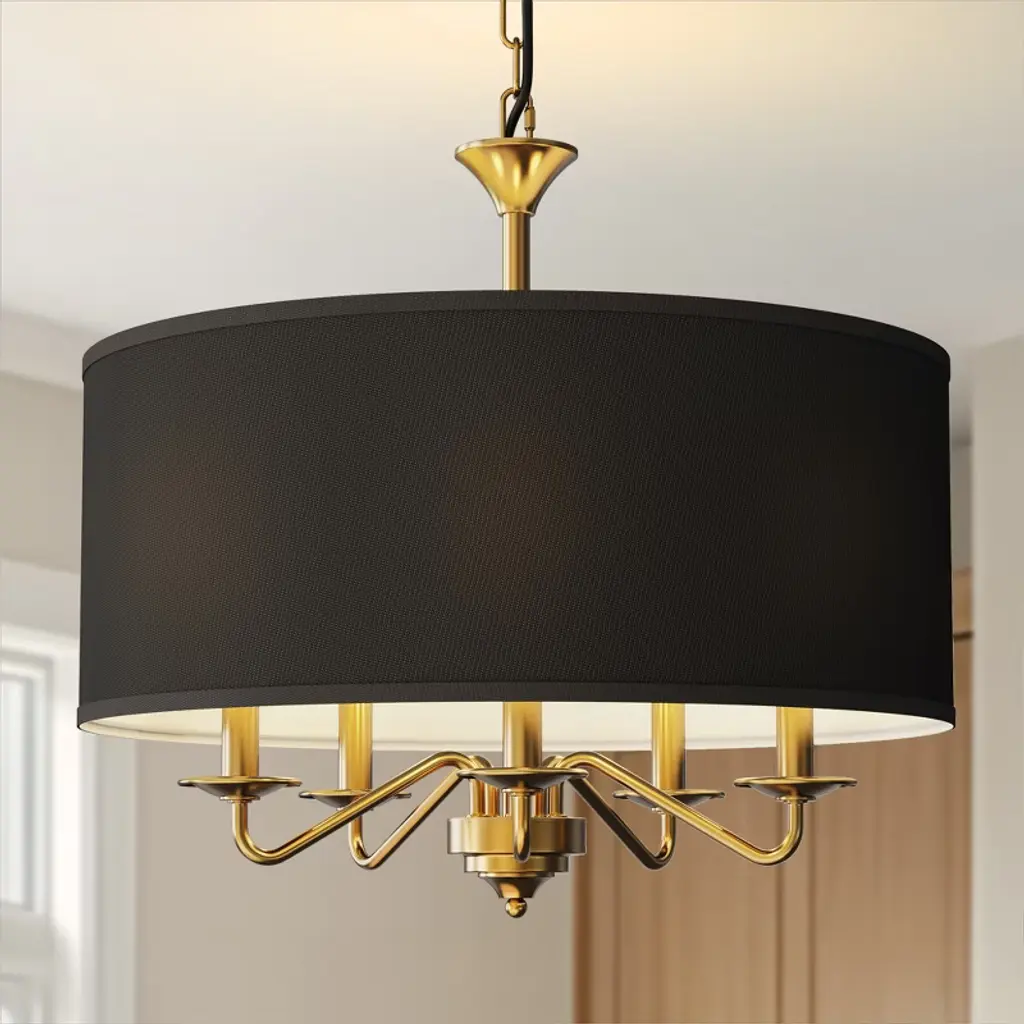 This stylish 5-light chandelier in a sleek gold finish features white drum shades that add a clean and modern touch to your living space. With five E12 sockets (light bulbs not included), it offers flexible lighting options, perfect for any contemporary room. Ideal for use in kitchens, dining rooms, living rooms, and entryways.